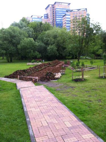 Согласен с тем что написано, но есть одно сомнение, которое попробую проверить. А сомнение такое: неужели в проекте по озеленению такие узкие дорожки? Сдается мне что как раз та дорожка, что сейчас делают больше похожа на проект, а самоделками (в том числе и парниками с какой-то рассадой, которые недавно убрали) как раз ТСЖ занималось.