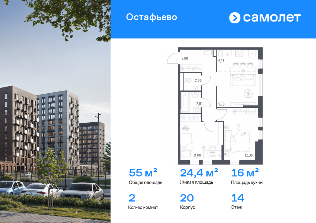 Предлагается 2-комнатная квартира комфорт-класса 54,97 кв.м в корпусе 20 на 14 этаже, в ЖК «Остафьево» Квартира без отделки. Доступность опции «отделка» и возможность комплектации мебелью и декором уточняйте у застройщика. Приобрести квартиру возможно по специальным акциям от застройщика, с текущими условиями акций можно ознакомиться в блоке «Акций». Цена динамическая и может отличаться, уточняйте актуальность у застройщика. «Остафьево» — масштабный жилой комплекс в Новой Москве, рядом с одноименным музеем-усадьбой и городским парком «Барыши». До станций МЦД «Щербинка» и «Остафьево» можно добраться на автомобиле за 5–7 минут. Часть домов уже сдана, на территории открыты две школы и три детских сада, а в будущем будет построена поликлиника, ТЦ, еще одна школа и три детских сада. Все необходимое рядом: на первых этажах домов работают магазины, аптеки и кафе. Дворы — приватные мини-парки без машин и посторонних. Кроме игровых площадок, для детей обустроили тематический плейхаб «Маяк». В будущем появятся плейхаб «Алиса в стране чудес», арт-объект «Тропа зеркал», а также большой ландшафтный парк. В квартале — монолитные дома комфортной высоты, от 10 этажей. Светлые фасады украшают кирпичные вставки в теплых природных оттенках.
