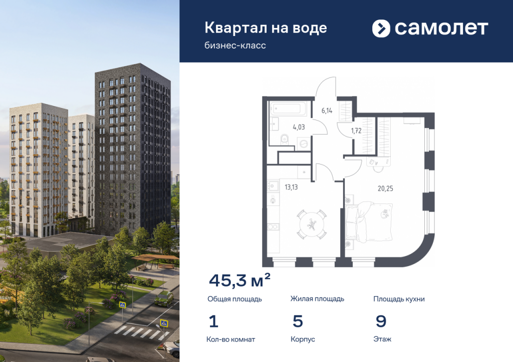 Предлагается 1-комнатная квартира бизнес-класса 45,27 кв.м в корпусе 5 на 9 этаже, в ЖК «Квартал на воде» Квартира без отделки. Доступность опции «отделка» и возможность комплектации мебелью и декором уточняйте у застройщика. Приобрести квартиру возможно по специальным акциям от застройщика, с текущими условиями акций можно ознакомиться в блоке «Акций». Цена динамическая и может отличаться, уточняйте актуальность у застройщика. «Квартал на воде» — жилой комплекс бизнес-класса на берегу Москвы-реки, в районе Печатники. Включает дома переменной этажности, собственную благоустроенную набережную и приватные дворы-парки. Проект — пример минималистичной архитектуры от бюро Kleinewelt Architekten. До МЦД-2 «Перерва» — 5 минут пешком. В конце 2027 года рядом откроется станция метро «Курьяново».