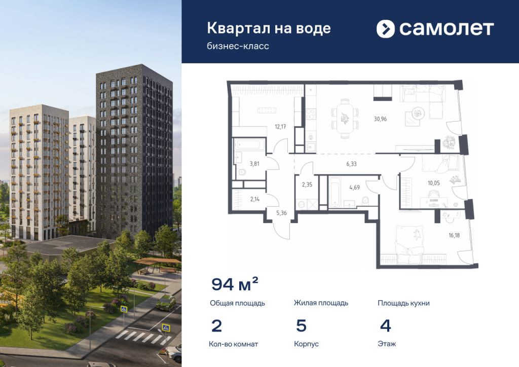 Предлагается 2-комнатная квартира бизнес-класса 94,04 кв.м в корпусе 5 на 4 этаже, в ЖК «Квартал на воде» Квартира без отделки. Доступность опции «отделка» и возможность комплектации мебелью и декором уточняйте у застройщика. Приобрести квартиру возможно по специальным акциям от застройщика, с текущими условиями акций можно ознакомиться в блоке «Акций». Цена динамическая и может отличаться, уточняйте актуальность у застройщика. «Квартал на воде» — жилой комплекс бизнес-класса на берегу Москвы-реки, в районе Печатники. Включает дома переменной этажности, собственную благоустроенную набережную и приватные дворы-парки. Проект — пример минималистичной архитектуры от бюро Kleinewelt Architekten. До МЦД-2 «Перерва» — 5 минут пешком. В конце 2027 года рядом откроется станция метро «Курьяново».