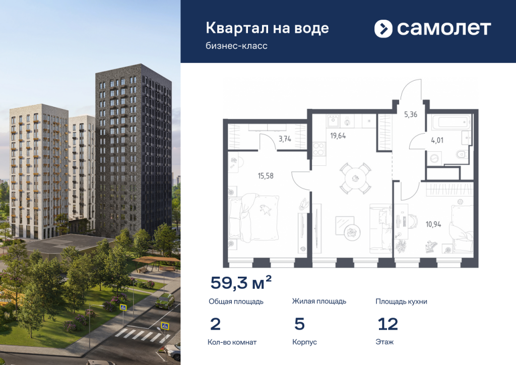 Предлагается 2-комнатная квартира бизнес-класса 59,27 кв.м в корпусе 5 на 12 этаже, в ЖК «Квартал на воде» Квартира без отделки. Доступность опции «отделка» и возможность комплектации мебелью и декором уточняйте у застройщика. Приобрести квартиру возможно по специальным акциям от застройщика, с текущими условиями акций можно ознакомиться в блоке «Акций». Цена динамическая и может отличаться, уточняйте актуальность у застройщика. «Квартал на воде» — жилой комплекс бизнес-класса на берегу Москвы-реки, в районе Печатники. Включает дома переменной этажности, собственную благоустроенную набережную и приватные дворы-парки. Проект — пример минималистичной архитектуры от бюро Kleinewelt Architekten. До МЦД-2 «Перерва» — 5 минут пешком. В конце 2027 года рядом откроется станция метро «Курьяново».