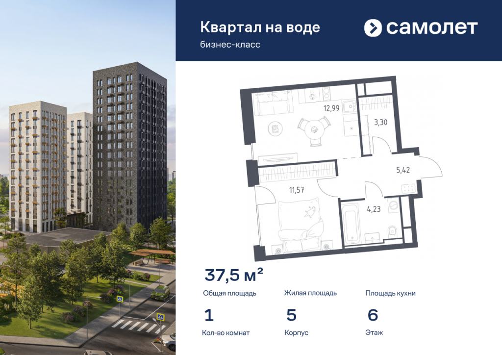 Предлагается 1-комнатная квартира бизнес-класса 37,51 кв.м в корпусе 5 на 6 этаже, в ЖК «Квартал на воде» Квартира без отделки. Доступность опции «отделка» и возможность комплектации мебелью и декором уточняйте у застройщика. Приобрести квартиру возможно по специальным акциям от застройщика, с текущими условиями акций можно ознакомиться в блоке «Акций». Цена динамическая и может отличаться, уточняйте актуальность у застройщика. «Квартал на воде» — жилой комплекс бизнес-класса на берегу Москвы-реки, в районе Печатники. Включает дома переменной этажности, собственную благоустроенную набережную и приватные дворы-парки. Проект — пример минималистичной архитектуры от бюро Kleinewelt Architekten. До МЦД-2 «Перерва» — 5 минут пешком. В конце 2027 года рядом откроется станция метро «Курьяново».
