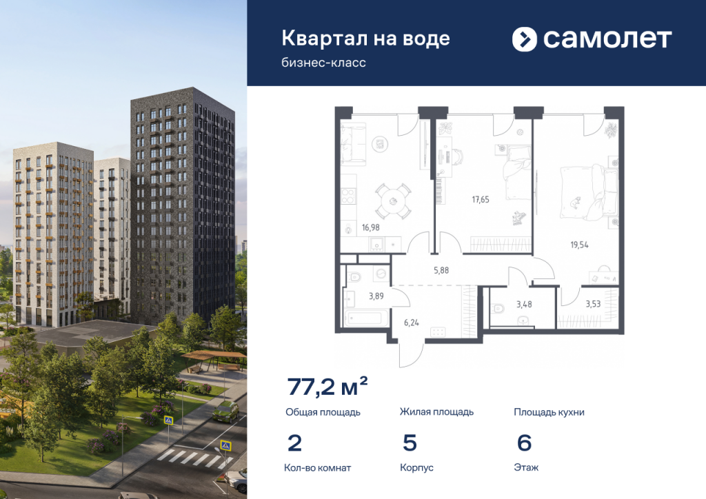 Предлагается 2-комнатная квартира бизнес-класса 77,19 кв.м в корпусе 5 на 6 этаже, в ЖК «Квартал на воде» Квартира без отделки. Доступность опции «отделка» и возможность комплектации мебелью и декором уточняйте у застройщика. Приобрести квартиру возможно по специальным акциям от застройщика, с текущими условиями акций можно ознакомиться в блоке «Акций». Цена динамическая и может отличаться, уточняйте актуальность у застройщика. «Квартал на воде» — жилой комплекс бизнес-класса на берегу Москвы-реки, в районе Печатники. Включает дома переменной этажности, собственную благоустроенную набережную и приватные дворы-парки. Проект — пример минималистичной архитектуры от бюро Kleinewelt Architekten. До МЦД-2 «Перерва» — 5 минут пешком. В конце 2027 года рядом откроется станция метро «Курьяново».