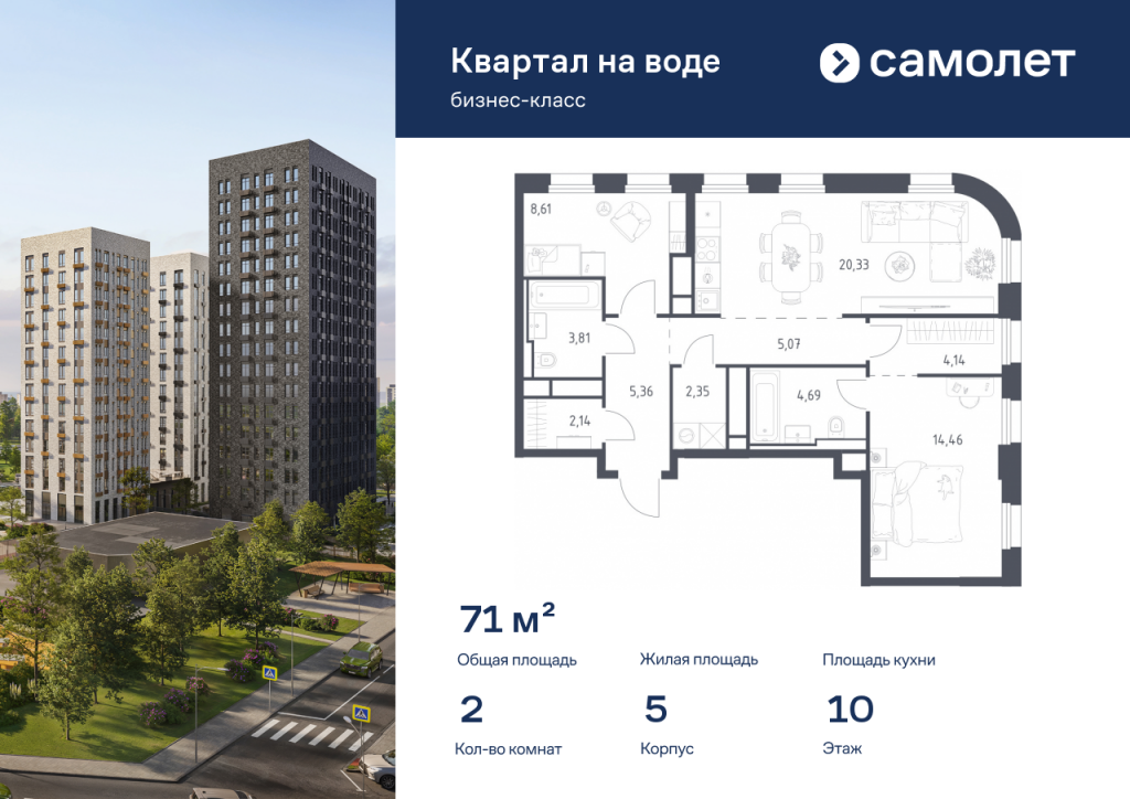 Предлагается 2-комнатная квартира бизнес-класса 70,96 кв.м в корпусе 5 на 10 этаже, в ЖК «Квартал на воде» Квартира без отделки. Доступность опции «отделка» и возможность комплектации мебелью и декором уточняйте у застройщика. Приобрести квартиру возможно по специальным акциям от застройщика, с текущими условиями акций можно ознакомиться в блоке «Акций». Цена динамическая и может отличаться, уточняйте актуальность у застройщика. «Квартал на воде» — жилой комплекс бизнес-класса на берегу Москвы-реки, в районе Печатники. Включает дома переменной этажности, собственную благоустроенную набережную и приватные дворы-парки. Проект — пример минималистичной архитектуры от бюро Kleinewelt Architekten. До МЦД-2 «Перерва» — 5 минут пешком. В конце 2027 года рядом откроется станция метро «Курьяново».