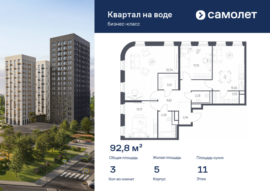 Предлагается 3-комнатная квартира бизнес-класса 92,8 кв.м в корпусе 5 на 11 этаже, в ЖК «Квартал на воде» Квартира без отделки. Доступность опции «отделка» и возможность комплектации мебелью и декором уточняйте у застройщика. Приобрести квартиру возможно по специальным акциям от застройщика, с текущими условиями акций можно ознакомиться в блоке «Акций». Цена динамическая и может отличаться, уточняйте актуальность у застройщика. «Квартал на воде» — жилой комплекс бизнес-класса на берегу Москвы-реки, в районе Печатники. Включает дома переменной этажности, собственную благоустроенную набережную и приватные дворы-парки. Проект — пример минималистичной архитектуры от бюро Kleinewelt Architekten. До МЦД-2 «Перерва» — 5 минут пешком. В конце 2027 года рядом откроется станция метро «Курьяново».