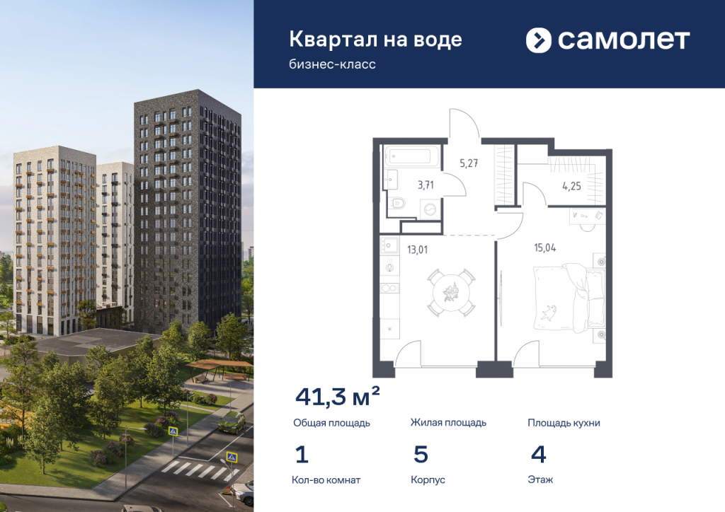 Предлагается 1-комнатная квартира бизнес-класса 41,28 кв.м в корпусе 5 на 4 этаже, в ЖК «Квартал на воде» Квартира без отделки. Доступность опции «отделка» и возможность комплектации мебелью и декором уточняйте у застройщика. Приобрести квартиру возможно по специальным акциям от застройщика, с текущими условиями акций можно ознакомиться в блоке «Акций». Цена динамическая и может отличаться, уточняйте актуальность у застройщика. «Квартал на воде» — жилой комплекс бизнес-класса на берегу Москвы-реки, в районе Печатники. Включает дома переменной этажности, собственную благоустроенную набережную и приватные дворы-парки. Проект — пример минималистичной архитектуры от бюро Kleinewelt Architekten. До МЦД-2 «Перерва» — 5 минут пешком. В конце 2027 года рядом откроется станция метро «Курьяново».