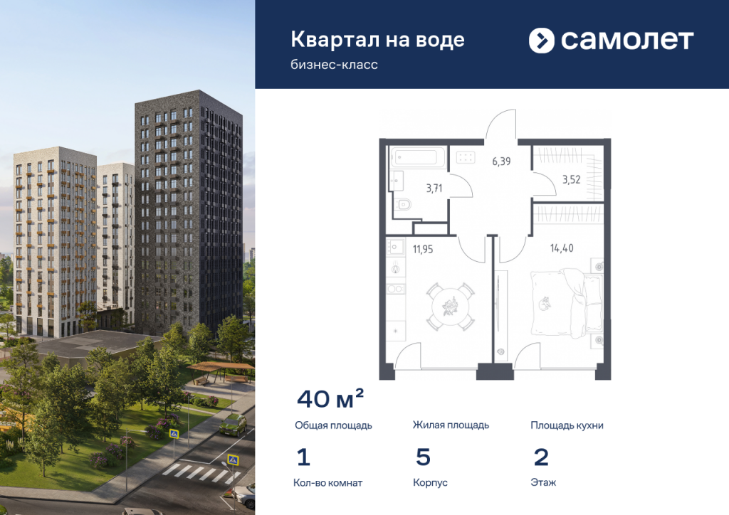 Предлагается 1-комнатная квартира бизнес-класса 39,97 кв.м в корпусе 5 на 2 этаже, в ЖК «Квартал на воде» Квартира без отделки. Доступность опции «отделка» и возможность комплектации мебелью и декором уточняйте у застройщика. Приобрести квартиру возможно по специальным акциям от застройщика, с текущими условиями акций можно ознакомиться в блоке «Акций». Цена динамическая и может отличаться, уточняйте актуальность у застройщика. «Квартал на воде» — жилой комплекс бизнес-класса на берегу Москвы-реки, в районе Печатники. Включает дома переменной этажности, собственную благоустроенную набережную и приватные дворы-парки. Проект — пример минималистичной архитектуры от бюро Kleinewelt Architekten. До МЦД-2 «Перерва» — 5 минут пешком. В конце 2027 года рядом откроется станция метро «Курьяново».