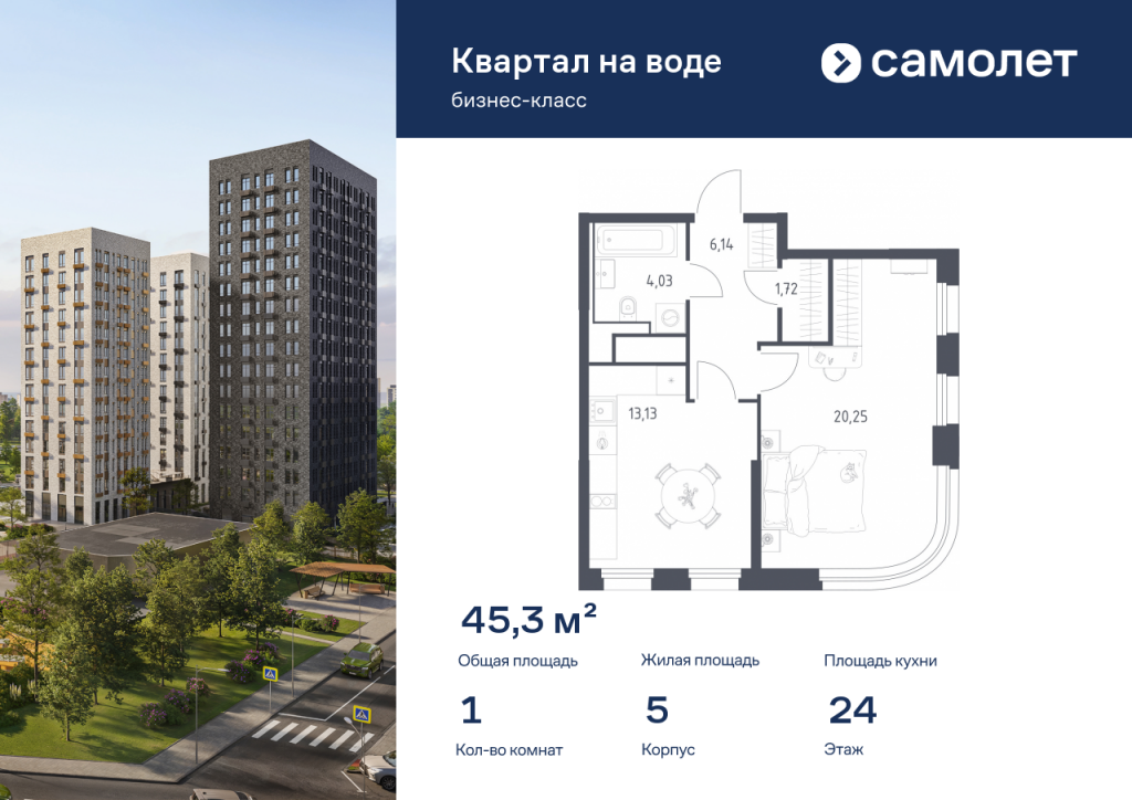 Предлагается 1-комнатная квартира бизнес-класса 45,27 кв.м в корпусе 5 на 24 этаже, в ЖК «Квартал на воде» Квартира без отделки. Доступность опции «отделка» и возможность комплектации мебелью и декором уточняйте у застройщика. Приобрести квартиру возможно по специальным акциям от застройщика, с текущими условиями акций можно ознакомиться в блоке «Акций». Цена динамическая и может отличаться, уточняйте актуальность у застройщика. «Квартал на воде» — жилой комплекс бизнес-класса на берегу Москвы-реки, в районе Печатники. Включает дома переменной этажности, собственную благоустроенную набережную и приватные дворы-парки. Проект — пример минималистичной архитектуры от бюро Kleinewelt Architekten. До МЦД-2 «Перерва» — 5 минут пешком. В конце 2027 года рядом откроется станция метро «Курьяново».