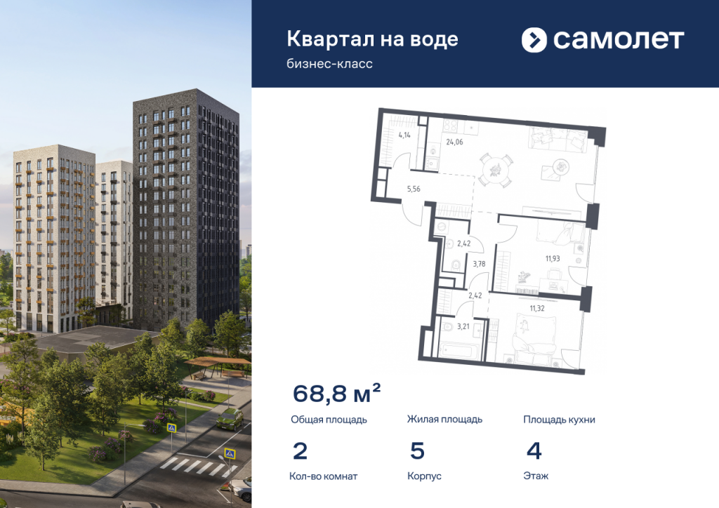Предлагается 2-комнатная квартира бизнес-класса 68,84 кв.м в корпусе 5 на 4 этаже, в ЖК «Квартал на воде» Квартира без отделки. Доступность опции «отделка» и возможность комплектации мебелью и декором уточняйте у застройщика. Приобрести квартиру возможно по специальным акциям от застройщика, с текущими условиями акций можно ознакомиться в блоке «Акций». Цена динамическая и может отличаться, уточняйте актуальность у застройщика. «Квартал на воде» — жилой комплекс бизнес-класса на берегу Москвы-реки, в районе Печатники. Включает дома переменной этажности, собственную благоустроенную набережную и приватные дворы-парки. Проект — пример минималистичной архитектуры от бюро Kleinewelt Architekten. До МЦД-2 «Перерва» — 5 минут пешком. В конце 2027 года рядом откроется станция метро «Курьяново».