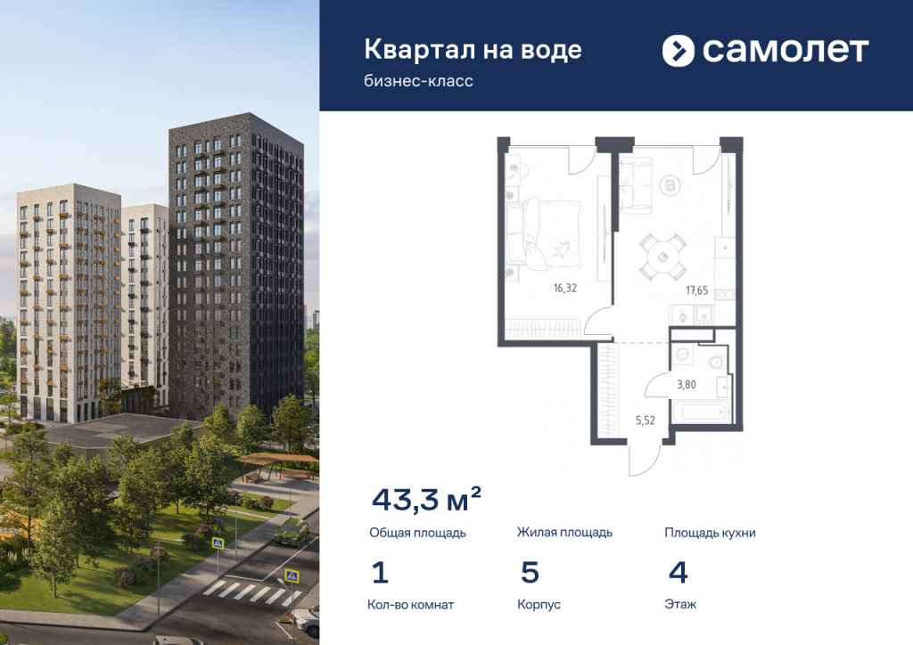 Предлагается 1-комнатная квартира бизнес-класса 43,29 кв.м в корпусе 5 на 4 этаже, в ЖК «Квартал на воде» Квартира без отделки. Доступность опции «отделка» и возможность комплектации мебелью и декором уточняйте у застройщика. Приобрести квартиру возможно по специальным акциям от застройщика, с текущими условиями акций можно ознакомиться в блоке «Акций». Цена динамическая и может отличаться, уточняйте актуальность у застройщика. «Квартал на воде» — жилой комплекс бизнес-класса на берегу Москвы-реки, в районе Печатники. Включает дома переменной этажности, собственную благоустроенную набережную и приватные дворы-парки. Проект — пример минималистичной архитектуры от бюро Kleinewelt Architekten. До МЦД-2 «Перерва» — 5 минут пешком. В конце 2027 года рядом откроется станция метро «Курьяново».