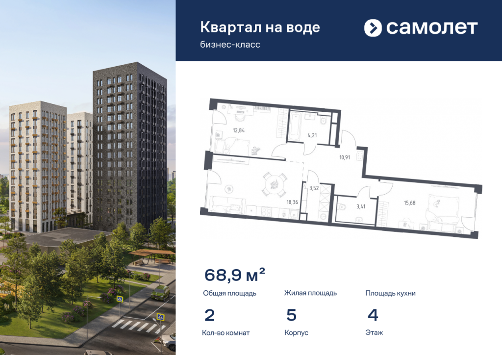 Предлагается 2-комнатная квартира бизнес-класса 68,93 кв.м в корпусе 5 на 4 этаже, в ЖК «Квартал на воде» Квартира без отделки. Доступность опции «отделка» и возможность комплектации мебелью и декором уточняйте у застройщика. Приобрести квартиру возможно по специальным акциям от застройщика, с текущими условиями акций можно ознакомиться в блоке «Акций». Цена динамическая и может отличаться, уточняйте актуальность у застройщика. «Квартал на воде» — жилой комплекс бизнес-класса на берегу Москвы-реки, в районе Печатники. Включает дома переменной этажности, собственную благоустроенную набережную и приватные дворы-парки. Проект — пример минималистичной архитектуры от бюро Kleinewelt Architekten. До МЦД-2 «Перерва» — 5 минут пешком. В конце 2027 года рядом откроется станция метро «Курьяново».