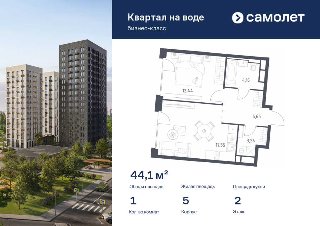 Предлагается 1-комнатная квартира бизнес-класса 44,07 кв.м в корпусе 5 на 2 этаже, в ЖК «Квартал на воде» Квартира без отделки. Доступность опции «отделка» и возможность комплектации мебелью и декором уточняйте у застройщика. Приобрести квартиру возможно по специальным акциям от застройщика, с текущими условиями акций можно ознакомиться в блоке «Акций». Цена динамическая и может отличаться, уточняйте актуальность у застройщика. «Квартал на воде» — жилой комплекс бизнес-класса на берегу Москвы-реки, в районе Печатники. Включает дома переменной этажности, собственную благоустроенную набережную и приватные дворы-парки. Проект — пример минималистичной архитектуры от бюро Kleinewelt Architekten. До МЦД-2 «Перерва» — 5 минут пешком. В конце 2027 года рядом откроется станция метро «Курьяново».