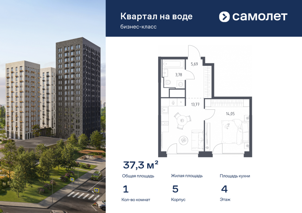 Предлагается 1-комнатная квартира бизнес-класса 37,29 кв.м в корпусе 5 на 4 этаже, в ЖК «Квартал на воде» Квартира без отделки. Доступность опции «отделка» и возможность комплектации мебелью и декором уточняйте у застройщика. Приобрести квартиру возможно по специальным акциям от застройщика, с текущими условиями акций можно ознакомиться в блоке «Акций». Цена динамическая и может отличаться, уточняйте актуальность у застройщика. «Квартал на воде» — жилой комплекс бизнес-класса на берегу Москвы-реки, в районе Печатники. Включает дома переменной этажности, собственную благоустроенную набережную и приватные дворы-парки. Проект — пример минималистичной архитектуры от бюро Kleinewelt Architekten. До МЦД-2 «Перерва» — 5 минут пешком. В конце 2027 года рядом откроется станция метро «Курьяново».