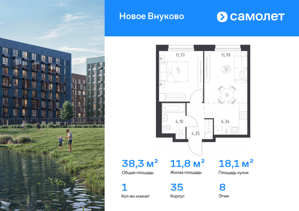 Предлагается 1-комнатная квартира комфорт-класса 38,25 кв.м в корпусе 35 на 8 этаже, в ЖК «Новое Внуково» Квартира без отделки. Доступность опции «отделка» и возможность комплектации мебелью и декором уточняйте у застройщика. Приобрести квартиру возможно по специальным акциям от застройщика, с текущими условиями акций можно ознакомиться в блоке «Акций». Цена динамическая и может отличаться, уточняйте актуальность у застройщика. «Новое Внуково» — это жилой комплекс в Новой Москве, у подножия берега реки Незнайка. Поблизости — живописные места для прогулок: народный парк «Ручеек», усадьба Старо-Никольское, Валуевский и Ульяновский лесопарки. Часть домов сдана и внутри района уже открыт детсад с бассейном, а в ближайшее время откроются еще 3 детсада, 2 школы и поликлиника. На территории проекта будет построен первый в России Центр Российской Федерации Баскетбола, где будут площадки с трибунами, тренажерный зал, кафе и конференц-зал. Дворы-парки закрыты от машин и посторонних. На территории — прогулочный маршрут вдоль реки Незнайка и набережная с шезлонгами и качелями для отдыха. Также здесь появится плейхаб «Незнайка на Луне», площадь для мероприятий с сухим фонтаном, летним кинотеатром и кафе. В жилом комплексе — монолитные дома высотой от 6 до 14 этажей. Фасады облицованы кирпичом природных оттенков.