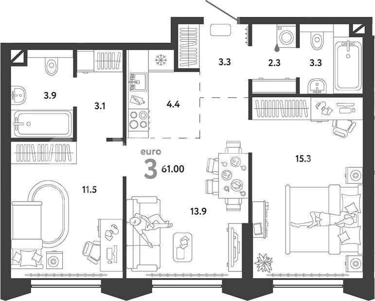 В продаже просторная Евро-3 с увеличенными окнами на 16 этаже общей площадью 61 кв.м. в проекте бизнес-класса Страна.Озёрная. В квартире два совмещенных санузла. Метро Озёрная всего в 2-х минутах ходьбы. Рядом с проектом 5 парков. Развитая инфраструктура района Очаково-Матвеевское: магазины, рестораны, салоны красоты, детские и спортивные учреждения.Ключи в 2026 году!Особенности проекта:• Здесь есть все необходимое: магазины, сервисы, консьерж, просторное лобби и детский сад.• Умный дом в каждой квартире.• Лобби с зонами отдыха и коворкинга, лапомойка, колясочные.• Круглосуточная охрана и видеонаблюдение с доступом через приложение.• Паркинг с контролем выбросов CO2, тележками и велопарковкой. Торговая галерея на первом этаже.Отделка:В квартирах подведены коммуникации (вода, электричество, отопление), но требуется чистовая отделка (стены и пол не выровнены).Номер объекта: #102/538001/21009