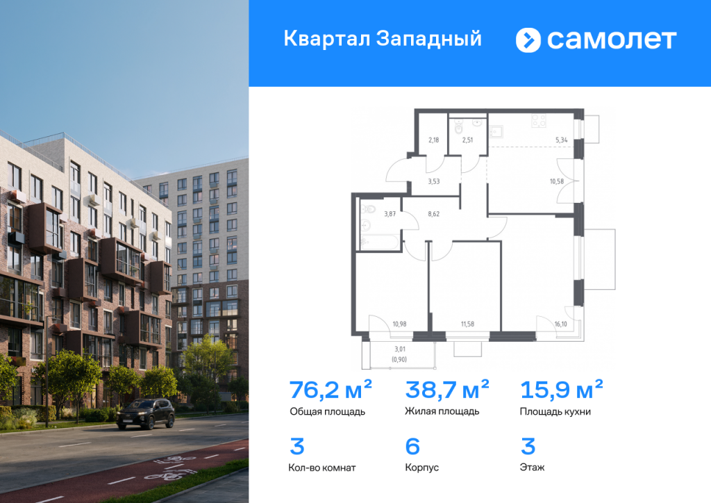 Предлагается 3-комнатная квартира комфорт-класса 76,19 кв.м в корпусе 6 на 3 этаже, в ЖК «Квартал Западный» Квартира без отделки. Доступность опции «отделка» и возможность комплектации мебелью и декором уточняйте у застройщика. Приобрести квартиру возможно по специальным акциям от застройщика, с текущими условиями акций можно ознакомиться в блоке «Акций». Цена динамическая и может отличаться, уточняйте актуальность у застройщика. Жилой комплекс в окружении лесопарков и рядом с рекой. До станции МЦД-4 «Санино» можно дойти пешком за 7 минут, а на территории проекта появится транспортно-пересадочный узел с торговым центром. Для жителей построят школу, 2 детсада, в одном из которых будут развивающие кабинеты-трансформеры. Дворы — тихое зеленое пространство без машин. В проекте появится собственный ландшафтный парк с благоустроенной набережной и центральная площадь, на которой будут проводиться различные мероприятия. Высота домов — от 5 до 15 этажей. Фасады выполняют в естественных оттенках, в соответствии с дизайн-кодом «Полевой луг». У каждой секции — свое цветовое решение. Белый цвет верхних этажей добавляет застройке легкости. Фасады облицованы клинкерным глазурованным кирпичом, который используют в проектах бизнес-класса.