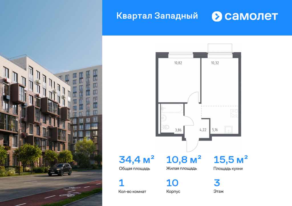 Предлагается 1-комнатная квартира комфорт-класса 34,38 кв.м в корпусе 10 на 3 этаже, в ЖК «Квартал Западный» Квартира без отделки. Доступность опции «отделка» и возможность комплектации мебелью и декором уточняйте у застройщика. Приобрести квартиру возможно по специальным акциям от застройщика, с текущими условиями акций можно ознакомиться в блоке «Акций». Цена динамическая и может отличаться, уточняйте актуальность у застройщика. Жилой комплекс в окружении лесопарков и рядом с рекой. До станции МЦД-4 «Санино» можно дойти пешком за 7 минут, а на территории проекта появится транспортно-пересадочный узел с торговым центром. Для жителей построят школу, 2 детсада, в одном из которых будут развивающие кабинеты-трансформеры. Дворы — тихое зеленое пространство без машин. В проекте появится собственный ландшафтный парк с благоустроенной набережной и центральная площадь, на которой будут проводиться различные мероприятия. Высота домов — от 5 до 15 этажей. Фасады выполняют в естественных оттенках, в соответствии с дизайн-кодом «Полевой луг». У каждой секции — свое цветовое решение. Белый цвет верхних этажей добавляет застройке легкости. Фасады облицованы клинкерным глазурованным кирпичом, который используют в проектах бизнес-класса.