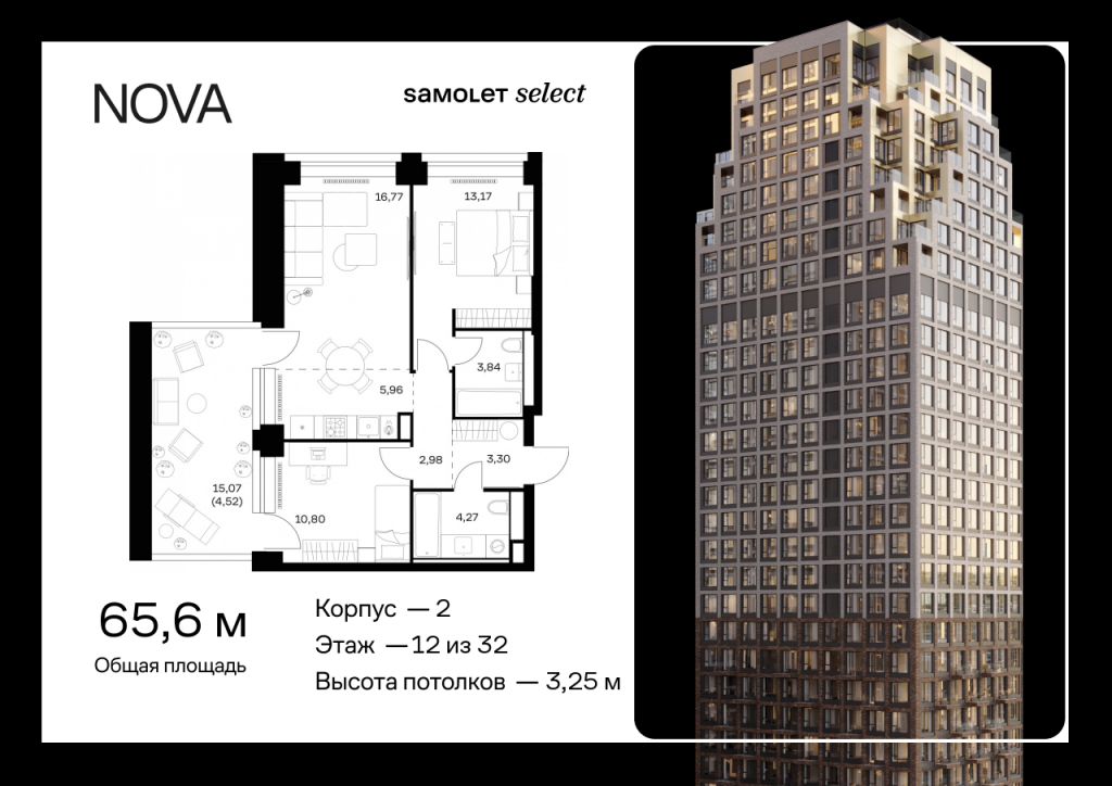 Предлагается 2-комнатная квартира премиум-класса 65,61 кв.м в корпусе 2 на 12 этаже, в ЖК «NOVA» Квартира без отделки. Доступность опции «отделка» и возможность комплектации мебелью и декором уточняйте у застройщика. Приобрести квартиру возможно по специальным акциям от застройщика, с текущими условиями акций можно ознакомиться в блоке «Акций». Цена динамическая и может отличаться, уточняйте актуальность у застройщика. «NOVA» — первый проект в премиальной линейке Samolet Select. Многоуровневое благоустройство объединяет разнообразные сценарии отдыха и развлечений. Из окон открывается завораживающий вид на Долину реки Сетунь. Собственные школа, детский сад, бизнес-центр и премиум фитнес-клуб — все это создает исключительные возможности для полной жизни. Редкие форматы квартир и дизайнерская отделка позволяют создать комфортное пространство в самом центре столицы.