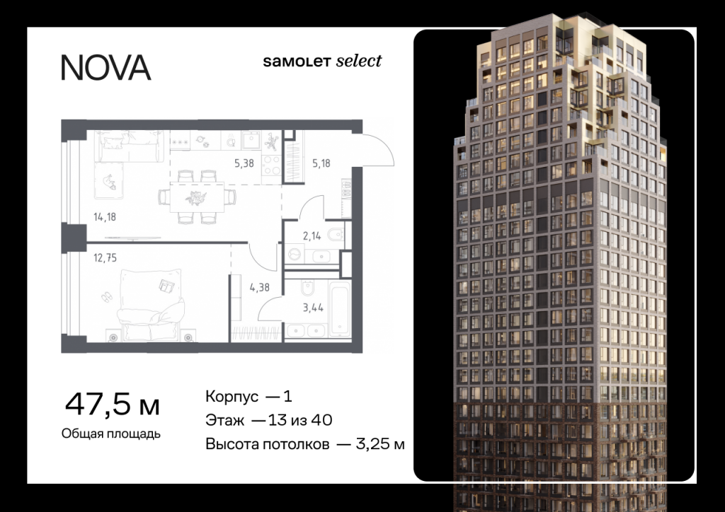 Предлагается 1-комнатная квартира премиум-класса 47,45 кв.м в корпусе 1 на 13 этаже, в ЖК «NOVA» Квартира без отделки. Доступность опции «отделка» и возможность комплектации мебелью и декором уточняйте у застройщика. Приобрести квартиру возможно по специальным акциям от застройщика, с текущими условиями акций можно ознакомиться в блоке «Акций». Цена динамическая и может отличаться, уточняйте актуальность у застройщика. «NOVA» — первый проект в премиальной линейке Samolet Select. Многоуровневое благоустройство объединяет разнообразные сценарии отдыха и развлечений. Из окон открывается завораживающий вид на Долину реки Сетунь. Собственные школа, детский сад, бизнес-центр и премиум фитнес-клуб — все это создает исключительные возможности для полной жизни. Редкие форматы квартир и дизайнерская отделка позволяют создать комфортное пространство в самом центре столицы.