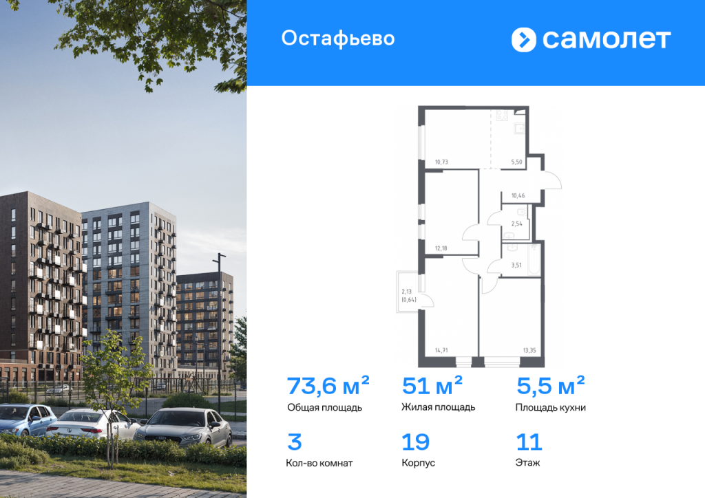 Строим кварталы для жизни с заботой о будущем. Предлагается 3-комнатная квартира комфорт-класса 73,62 кв.м в корпусе 19 на 11 этаже, в ЖК «Остафьево» Квартира с чистовой отделкой. Доступность дополнительных опций уточняйте у застройщика. Приобрести квартиру возможно по специальным акциям от застройщика, с текущими условиями акций можно ознакомиться в блоке «Акций». Цена динамическая и может отличаться, уточняйте актуальность у застройщика. «Остафьево» — масштабный жилой комплекс в Новой Москве, рядом с одноименным музеем-усадьбой и городским парком «Барыши». До станций МЦД «Щербинка» и «Остафьево» можно добраться на автомобиле за 5–7 минут. Часть домов уже сдана, на территории открыты две школы и три детских сада, а в будущем будет построена поликлиника, ТЦ, еще одна школа и три детских сада. Все необходимое рядом: на первых этажах домов работают магазины, аптеки и кафе. Дворы — приватные мини-парки без машин и посторонних. Кроме игровых площадок, для детей обустроили тематический плейхаб «Маяк». В будущем появятся плейхаб «Алиса в стране чудес», арт-объект «Тропа зеркал», а также большой ландшафтный парк. В квартале — монолитные дома комфортной высоты, от 10 этажей. Светлые фасады украшают кирпичные вставки в теплых природных оттенках.