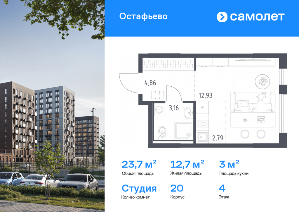 Строим кварталы для жизни с заботой о будущем. Предлагается квартира студия комфорт-класса 23,74 кв.м в корпусе 20 на 4 этаже, в ЖК «Остафьево» Квартира без отделки. Доступность опции «отделка» и возможность комплектации мебелью и декором уточняйте у застройщика. Приобрести квартиру возможно по специальным акциям от застройщика, с текущими условиями акций можно ознакомиться в блоке «Акций». Цена динамическая и может отличаться, уточняйте актуальность у застройщика. «Остафьево» — масштабный жилой комплекс в Новой Москве, рядом с одноименным музеем-усадьбой и городским парком «Барыши». До станций МЦД «Щербинка» и «Остафьево» можно добраться на автомобиле за 5–7 минут. Часть домов уже сдана, на территории открыты две школы и три детских сада, а в будущем будет построена поликлиника, ТЦ, еще одна школа и три детских сада. Все необходимое рядом: на первых этажах домов работают магазины, аптеки и кафе. Дворы — приватные мини-парки без машин и посторонних. Кроме игровых площадок, для детей обустроили тематический плейхаб «Маяк». В будущем появятся плейхаб «Алиса в стране чудес», арт-объект «Тропа зеркал», а также большой ландшафтный парк. В квартале — монолитные дома комфортной высоты, от 10 этажей. Светлые фасады украшают кирпичные вставки в теплых природных оттенках.