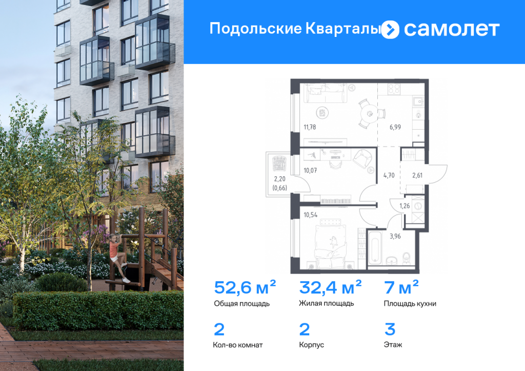 Строим кварталы для жизни с заботой о будущем. Предлагается 2-комнатная квартира комфорт-класса 52,57 кв.м в корпусе 2 на 3 этаже, в ЖК «Подольские Кварталы» Квартира без отделки. Доступность опции «отделка» и возможность комплектации мебелью и декором уточняйте у застройщика. Приобрести квартиру возможно по специальным акциям от застройщика, с текущими условиями акций можно ознакомиться в блоке «Акций». Цена динамическая и может отличаться, уточняйте актуальность у застройщика. «Подольские кварталы» — жилой комплекс в Новой Москве, рядом с Дубровицким лесом и рекой Десной. До станции МЦД-2 "Остафьево" - 5 минут на общественном транспорте, до станции МЦД-2 «Силикатная» — 8 минут на машине. Рядом — музей-заповедник «Остафьево», усадьбы Плещеево и Дубровицы. В квартале будут детский сад на 200 мест и учебно-воспитательный комплекс на 1 500 мест, в который войдут школа и детский сад. Первые этажи жилых корпусов займут квартиры, кафе, магазины и салоны красоты. Дворы-парки будут радовать жителей цветением и зеленью: здесь высадят липы, сосны, ели, клены и сирень. Плэйхаб станет местом встреч всех любителей активного отдыха: застройщик оборудует зоны тренажеров и воркаута, площадки для игр в настольный теннис, мяч, шахматы. Также появятся современные игровые площадки для детей. Для автовладельцев предусмотрен многоуровневый паркинг. В проекте — монолитные дома высотой от 9 до 12 этажей. Теплые оттенки фасадов соответствуют дизайн-коду «Янтарный берег». Фасады облицованы ложковой кирпичной кладкой.