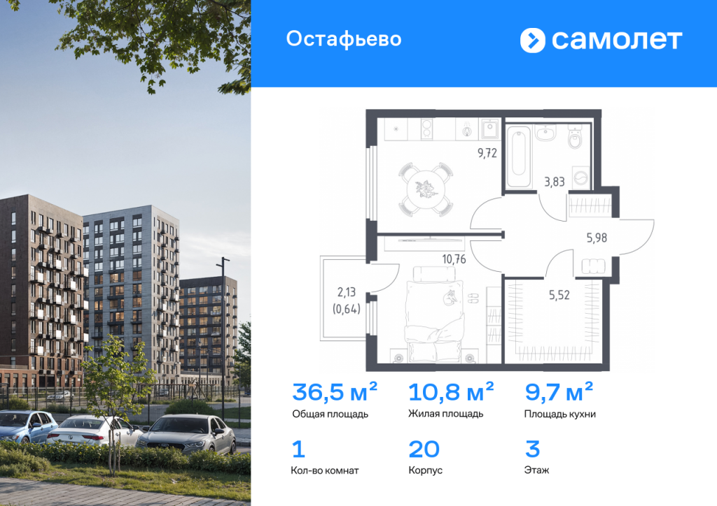 Строим кварталы для жизни с заботой о будущем. Предлагается 1-комнатная квартира комфорт-класса 36,45 кв.м в корпусе 20 на 3 этаже, в ЖК «Остафьево» Квартира с чистовой отделкой. Доступность дополнительных опций уточняйте у застройщика. Приобрести квартиру возможно по специальным акциям от застройщика, с текущими условиями акций можно ознакомиться в блоке «Акций». Цена динамическая и может отличаться, уточняйте актуальность у застройщика. «Остафьево» — масштабный жилой комплекс в Новой Москве, рядом с одноименным музеем-усадьбой и городским парком «Барыши». До станций МЦД «Щербинка» и «Остафьево» можно добраться на автомобиле за 5–7 минут. Часть домов уже сдана, на территории открыты две школы и три детских сада, а в будущем будет построена поликлиника, ТЦ, еще одна школа и три детских сада. Все необходимое рядом: на первых этажах домов работают магазины, аптеки и кафе. Дворы — приватные мини-парки без машин и посторонних. Кроме игровых площадок, для детей обустроили тематический плейхаб «Маяк». В будущем появятся плейхаб «Алиса в стране чудес», арт-объект «Тропа зеркал», а также большой ландшафтный парк. В квартале — монолитные дома комфортной высоты, от 10 этажей. Светлые фасады украшают кирпичные вставки в теплых природных оттенках.