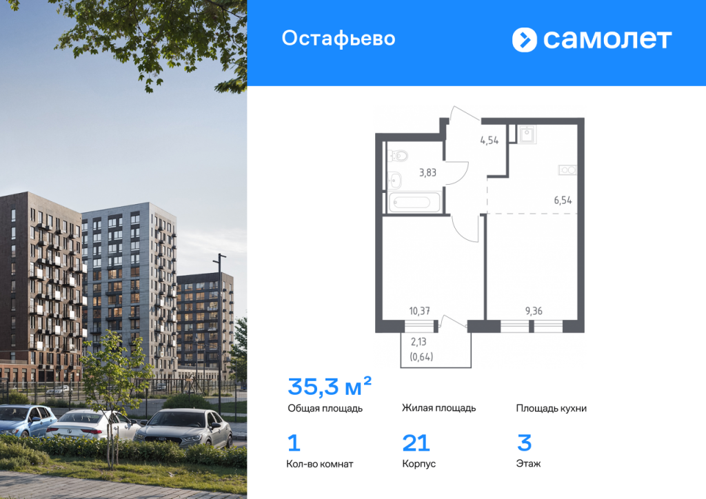 Строим кварталы для жизни с заботой о будущем. Предлагается 1-комнатная квартира комфорт-класса 35,28 кв.м в корпусе 21 на 3 этаже, в ЖК «Остафьево» Квартира без отделки. Доступность опции «отделка» и возможность комплектации мебелью и декором уточняйте у застройщика. Приобрести квартиру возможно по специальным акциям от застройщика, с текущими условиями акций можно ознакомиться в блоке «Акций». Цена динамическая и может отличаться, уточняйте актуальность у застройщика. «Остафьево» — масштабный жилой комплекс в Новой Москве, рядом с одноименным музеем-усадьбой и городским парком «Барыши». До станций МЦД «Щербинка» и «Остафьево» можно добраться на автомобиле за 5–7 минут. Часть домов уже сдана, на территории открыты две школы и три детских сада, а в будущем будет построена поликлиника, ТЦ, еще одна школа и три детских сада. Все необходимое рядом: на первых этажах домов работают магазины, аптеки и кафе. Дворы — приватные мини-парки без машин и посторонних. Кроме игровых площадок, для детей обустроили тематический плейхаб «Маяк». В будущем появятся плейхаб «Алиса в стране чудес», арт-объект «Тропа зеркал», а также большой ландшафтный парк. В квартале — монолитные дома комфортной высоты, от 10 этажей. Светлые фасады украшают кирпичные вставки в теплых природных оттенках.
