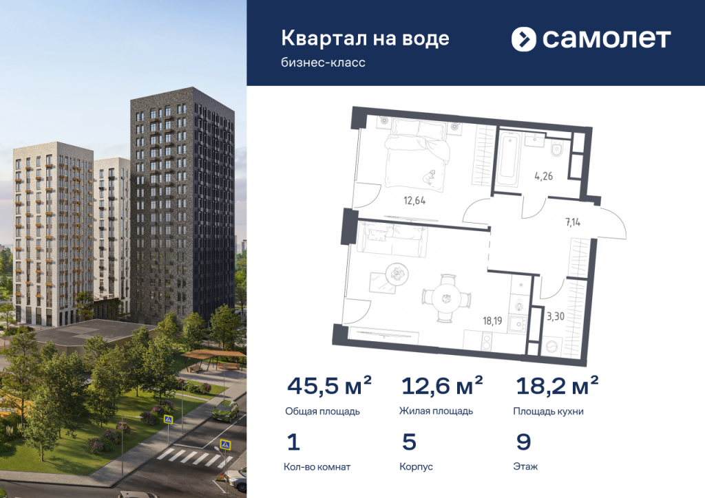 Строим кварталы для жизни с заботой о будущем. Предлагается 1-комнатная квартира бизнес-класса 45,53 кв.м в корпусе 5 на 9 этаже, в ЖК «Квартал на воде» Квартира без отделки. Доступность опции «отделка» и возможность комплектации мебелью и декором уточняйте у застройщика. Приобрести квартиру возможно по специальным акциям от застройщика, с текущими условиями акций можно ознакомиться в блоке «Акций». Цена динамическая и может отличаться, уточняйте актуальность у застройщика. «Квартал на воде» — жилой комплекс бизнес-класса на берегу Москвы-реки, в районе Печатники. Включает дома переменной этажности, собственную благоустроенную набережную и приватные дворы-парки. Проект — пример минималистичной архитектуры от бюро Kleinewelt Architekten. До МЦД-2 «Перерва» — 5 минут пешком. В конце 2027 года рядом откроется станция метро «Курьяново».
