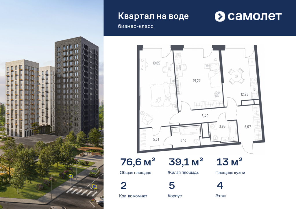 Строим кварталы для жизни с заботой о будущем. Предлагается 2-комнатная квартира бизнес-класса 76,63 кв.м в корпусе 5 на 4 этаже, в ЖК «Квартал на воде» Квартира без отделки. Доступность опции «отделка» и возможность комплектации мебелью и декором уточняйте у застройщика. Приобрести квартиру возможно по специальным акциям от застройщика, с текущими условиями акций можно ознакомиться в блоке «Акций». Цена динамическая и может отличаться, уточняйте актуальность у застройщика. «Квартал на воде» — жилой комплекс бизнес-класса на берегу Москвы-реки, в районе Печатники. Включает дома переменной этажности, собственную благоустроенную набережную и приватные дворы-парки. Проект — пример минималистичной архитектуры от бюро Kleinewelt Architekten. До МЦД-2 «Перерва» — 5 минут пешком. В конце 2027 года рядом откроется станция метро «Курьяново».