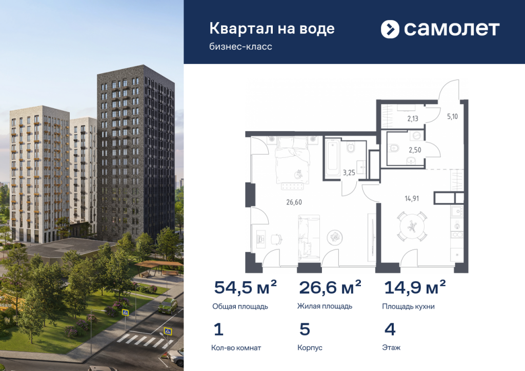 Строим кварталы для жизни с заботой о будущем. Предлагается 1-комнатная квартира бизнес-класса 54,49 кв.м в корпусе 5 на 4 этаже, в ЖК «Квартал на воде» Квартира без отделки. Доступность опции «отделка» и возможность комплектации мебелью и декором уточняйте у застройщика. Приобрести квартиру возможно по специальным акциям от застройщика, с текущими условиями акций можно ознакомиться в блоке «Акций». Цена динамическая и может отличаться, уточняйте актуальность у застройщика. «Квартал на воде» — жилой комплекс бизнес-класса на берегу Москвы-реки, в районе Печатники. Включает дома переменной этажности, собственную благоустроенную набережную и приватные дворы-парки. Проект — пример минималистичной архитектуры от бюро Kleinewelt Architekten. До МЦД-2 «Перерва» — 5 минут пешком. В конце 2027 года рядом откроется станция метро «Курьяново».