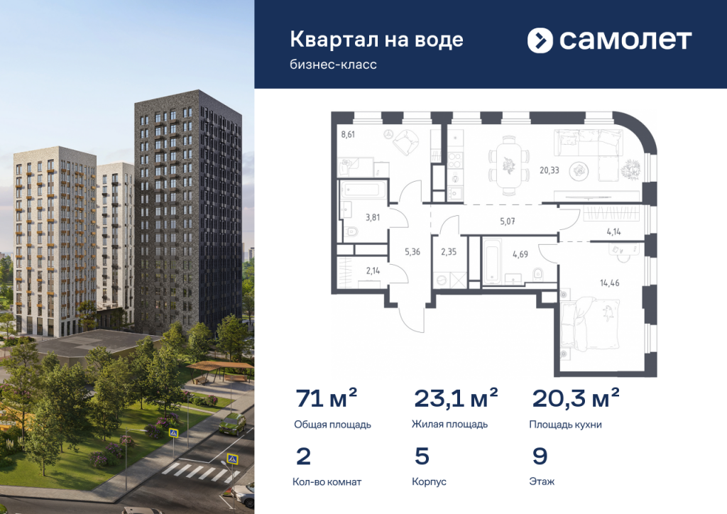 Строим кварталы для жизни с заботой о будущем. Предлагается 2-комнатная квартира бизнес-класса 70,96 кв.м в корпусе 5 на 9 этаже, в ЖК «Квартал на воде» Квартира без отделки. Доступность опции «отделка» и возможность комплектации мебелью и декором уточняйте у застройщика. Приобрести квартиру возможно по специальным акциям от застройщика, с текущими условиями акций можно ознакомиться в блоке «Акций». Цена динамическая и может отличаться, уточняйте актуальность у застройщика. «Квартал на воде» — жилой комплекс бизнес-класса на берегу Москвы-реки, в районе Печатники. Включает дома переменной этажности, собственную благоустроенную набережную и приватные дворы-парки. Проект — пример минималистичной архитектуры от бюро Kleinewelt Architekten. До МЦД-2 «Перерва» — 5 минут пешком. В конце 2027 года рядом откроется станция метро «Курьяново».