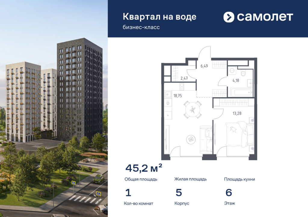 Строим кварталы для жизни с заботой о будущем. Предлагается 1-комнатная квартира бизнес-класса 45,17 кв.м в корпусе 5 на 6 этаже, в ЖК «Квартал на воде» Квартира без отделки. Доступность опции «отделка» и возможность комплектации мебелью и декором уточняйте у застройщика. Приобрести квартиру возможно по специальным акциям от застройщика, с текущими условиями акций можно ознакомиться в блоке «Акций». Цена динамическая и может отличаться, уточняйте актуальность у застройщика. «Квартал на воде» — жилой комплекс бизнес-класса на берегу Москвы-реки, в районе Печатники. Включает дома переменной этажности, собственную благоустроенную набережную и приватные дворы-парки. Проект — пример минималистичной архитектуры от бюро Kleinewelt Architekten. До МЦД-2 «Перерва» — 5 минут пешком. В конце 2027 года рядом откроется станция метро «Курьяново».