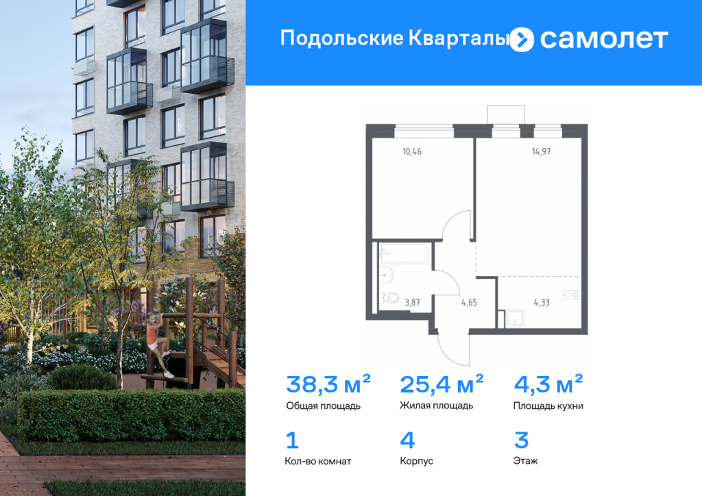Строим кварталы для жизни с заботой о будущем. Предлагается 1-комнатная квартира комфорт-класса 38,28 кв.м в корпусе 4 на 3 этаже, в ЖК «Подольские Кварталы» Квартира без отделки. Доступность опции «отделка» и возможность комплектации мебелью и декором уточняйте у застройщика. Приобрести квартиру возможно по специальным акциям от застройщика, с текущими условиями акций можно ознакомиться в блоке «Акций». Цена динамическая и может отличаться, уточняйте актуальность у застройщика. «Подольские кварталы» — жилой комплекс в Новой Москве, рядом с Дубровицким лесом и рекой Десной. До станции МЦД-2 "Остафьево" - 5 минут на общественном транспорте, до станции МЦД-2 «Силикатная» — 8 минут на машине. Рядом — музей-заповедник «Остафьево», усадьбы Плещеево и Дубровицы. В квартале будут детский сад на 200 мест и учебно-воспитательный комплекс на 1 500 мест, в который войдут школа и детский сад. Первые этажи жилых корпусов займут квартиры, кафе, магазины и салоны красоты. Дворы-парки будут радовать жителей цветением и зеленью: здесь высадят липы, сосны, ели, клены и сирень. Плэйхаб станет местом встреч всех любителей активного отдыха: застройщик оборудует зоны тренажеров и воркаута, площадки для игр в настольный теннис, мяч, шахматы. Также появятся современные игровые площадки для детей. Для автовладельцев предусмотрен многоуровневый паркинг. В проекте — монолитные дома высотой от 9 до 12 этажей. Теплые оттенки фасадов соответствуют дизайн-коду «Янтарный берег». Фасады облицованы ложковой кирпичной кладкой.