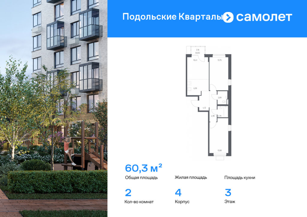 Строим кварталы для жизни с заботой о будущем. Предлагается 2-комнатная квартира комфорт-класса 60,29 кв.м в корпусе 4 на 3 этаже, в ЖК «Подольские Кварталы» Квартира без отделки. Доступность опции «отделка» и возможность комплектации мебелью и декором уточняйте у застройщика. Приобрести квартиру возможно по специальным акциям от застройщика, с текущими условиями акций можно ознакомиться в блоке «Акций». Цена динамическая и может отличаться, уточняйте актуальность у застройщика. «Подольские кварталы» — жилой комплекс в Новой Москве, рядом с Дубровицким лесом и рекой Десной. До станции МЦД-2 "Остафьево" - 5 минут на общественном транспорте, до станции МЦД-2 «Силикатная» — 8 минут на машине. Рядом — музей-заповедник «Остафьево», усадьбы Плещеево и Дубровицы. В квартале будут детский сад на 200 мест и учебно-воспитательный комплекс на 1 500 мест, в который войдут школа и детский сад. Первые этажи жилых корпусов займут квартиры, кафе, магазины и салоны красоты. Дворы-парки будут радовать жителей цветением и зеленью: здесь высадят липы, сосны, ели, клены и сирень. Плэйхаб станет местом встреч всех любителей активного отдыха: застройщик оборудует зоны тренажеров и воркаута, площадки для игр в настольный теннис, мяч, шахматы. Также появятся современные игровые площадки для детей. Для автовладельцев предусмотрен многоуровневый паркинг. В проекте — монолитные дома высотой от 9 до 12 этажей. Теплые оттенки фасадов соответствуют дизайн-коду «Янтарный берег». Фасады облицованы ложковой кирпичной кладкой.