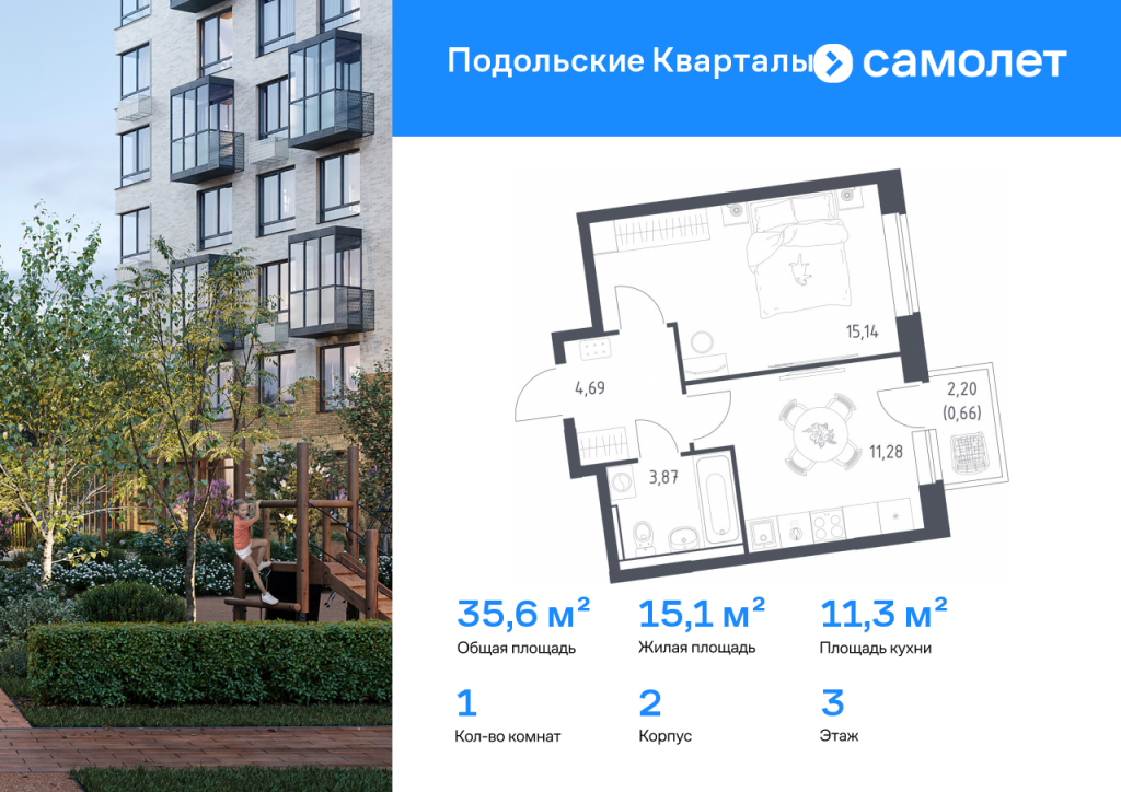 Строим кварталы для жизни с заботой о будущем. Предлагается 1-комнатная квартира комфорт-класса 35,64 кв.м в корпусе 2 на 3 этаже, в ЖК «Подольские Кварталы» Квартира без отделки. Доступность опции «отделка» и возможность комплектации мебелью и декором уточняйте у застройщика. Приобрести квартиру возможно по специальным акциям от застройщика, с текущими условиями акций можно ознакомиться в блоке «Акций». Цена динамическая и может отличаться, уточняйте актуальность у застройщика. «Подольские кварталы» — жилой комплекс в Новой Москве, рядом с Дубровицким лесом и рекой Десной. До станции МЦД-2 "Остафьево" - 5 минут на общественном транспорте, до станции МЦД-2 «Силикатная» — 8 минут на машине. Рядом — музей-заповедник «Остафьево», усадьбы Плещеево и Дубровицы. В квартале будут детский сад на 200 мест и учебно-воспитательный комплекс на 1 500 мест, в который войдут школа и детский сад. Первые этажи жилых корпусов займут квартиры, кафе, магазины и салоны красоты. Дворы-парки будут радовать жителей цветением и зеленью: здесь высадят липы, сосны, ели, клены и сирень. Плэйхаб станет местом встреч всех любителей активного отдыха: застройщик оборудует зоны тренажеров и воркаута, площадки для игр в настольный теннис, мяч, шахматы. Также появятся современные игровые площадки для детей. Для автовладельцев предусмотрен многоуровневый паркинг. В проекте — монолитные дома высотой от 9 до 12 этажей. Теплые оттенки фасадов соответствуют дизайн-коду «Янтарный берег». Фасады облицованы ложковой кирпичной кладкой.