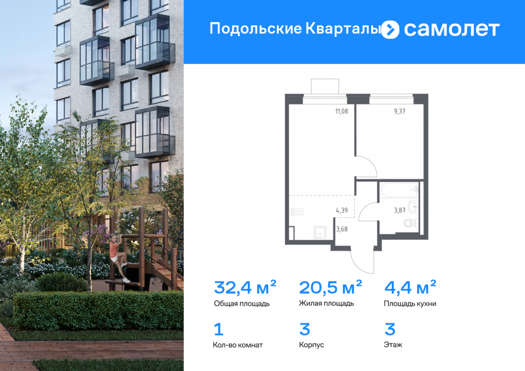 Строим кварталы для жизни с заботой о будущем. Предлагается 1-комнатная квартира комфорт-класса 32,39 кв.м в корпусе 3 на 3 этаже, в ЖК «Подольские Кварталы» Квартира без отделки. Доступность опции «отделка» и возможность комплектации мебелью и декором уточняйте у застройщика. Приобрести квартиру возможно по специальным акциям от застройщика, с текущими условиями акций можно ознакомиться в блоке «Акций». Цена динамическая и может отличаться, уточняйте актуальность у застройщика. «Подольские кварталы» — жилой комплекс в Новой Москве, рядом с Дубровицким лесом и рекой Десной. До станции МЦД-2 "Остафьево" - 5 минут на общественном транспорте, до станции МЦД-2 «Силикатная» — 8 минут на машине. Рядом — музей-заповедник «Остафьево», усадьбы Плещеево и Дубровицы. В квартале будут детский сад на 200 мест и учебно-воспитательный комплекс на 1 500 мест, в который войдут школа и детский сад. Первые этажи жилых корпусов займут квартиры, кафе, магазины и салоны красоты. Дворы-парки будут радовать жителей цветением и зеленью: здесь высадят липы, сосны, ели, клены и сирень. Плэйхаб станет местом встреч всех любителей активного отдыха: застройщик оборудует зоны тренажеров и воркаута, площадки для игр в настольный теннис, мяч, шахматы. Также появятся современные игровые площадки для детей. Для автовладельцев предусмотрен многоуровневый паркинг. В проекте — монолитные дома высотой от 9 до 12 этажей. Теплые оттенки фасадов соответствуют дизайн-коду «Янтарный берег». Фасады облицованы ложковой кирпичной кладкой.