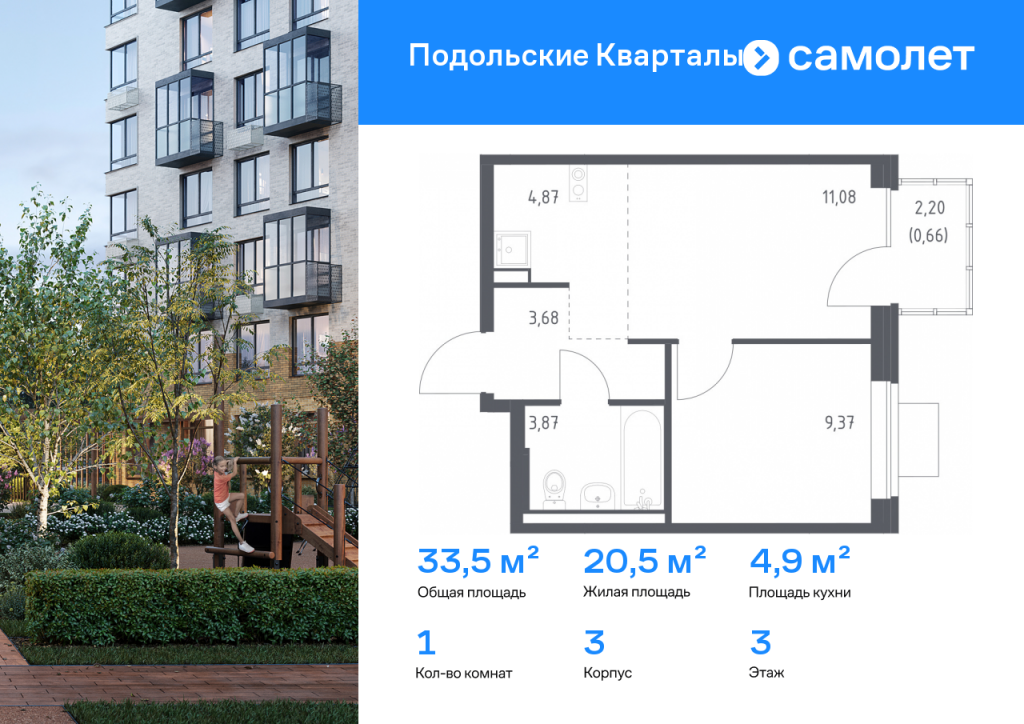 Строим кварталы для жизни с заботой о будущем. Предлагается 1-комнатная квартира комфорт-класса 33,53 кв.м в корпусе 3 на 3 этаже, в ЖК «Подольские Кварталы» Квартира без отделки. Доступность опции «отделка» и возможность комплектации мебелью и декором уточняйте у застройщика. Приобрести квартиру возможно по специальным акциям от застройщика, с текущими условиями акций можно ознакомиться в блоке «Акций». Цена динамическая и может отличаться, уточняйте актуальность у застройщика. «Подольские кварталы» — жилой комплекс в Новой Москве, рядом с Дубровицким лесом и рекой Десной. До станции МЦД-2 "Остафьево" - 5 минут на общественном транспорте, до станции МЦД-2 «Силикатная» — 8 минут на машине. Рядом — музей-заповедник «Остафьево», усадьбы Плещеево и Дубровицы. В квартале будут детский сад на 200 мест и учебно-воспитательный комплекс на 1 500 мест, в который войдут школа и детский сад. Первые этажи жилых корпусов займут квартиры, кафе, магазины и салоны красоты. Дворы-парки будут радовать жителей цветением и зеленью: здесь высадят липы, сосны, ели, клены и сирень. Плэйхаб станет местом встреч всех любителей активного отдыха: застройщик оборудует зоны тренажеров и воркаута, площадки для игр в настольный теннис, мяч, шахматы. Также появятся современные игровые площадки для детей. Для автовладельцев предусмотрен многоуровневый паркинг. В проекте — монолитные дома высотой от 9 до 12 этажей. Теплые оттенки фасадов соответствуют дизайн-коду «Янтарный берег». Фасады облицованы ложковой кирпичной кладкой.