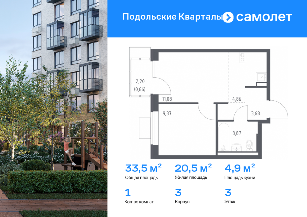 Строим кварталы для жизни с заботой о будущем. Предлагается 1-комнатная квартира комфорт-класса 33,52 кв.м в корпусе 3 на 3 этаже, в ЖК «Подольские Кварталы» Квартира без отделки. Доступность опции «отделка» и возможность комплектации мебелью и декором уточняйте у застройщика. Приобрести квартиру возможно по специальным акциям от застройщика, с текущими условиями акций можно ознакомиться в блоке «Акций». Цена динамическая и может отличаться, уточняйте актуальность у застройщика. «Подольские кварталы» — жилой комплекс в Новой Москве, рядом с Дубровицким лесом и рекой Десной. До станции МЦД-2 "Остафьево" - 5 минут на общественном транспорте, до станции МЦД-2 «Силикатная» — 8 минут на машине. Рядом — музей-заповедник «Остафьево», усадьбы Плещеево и Дубровицы. В квартале будут детский сад на 200 мест и учебно-воспитательный комплекс на 1 500 мест, в который войдут школа и детский сад. Первые этажи жилых корпусов займут квартиры, кафе, магазины и салоны красоты. Дворы-парки будут радовать жителей цветением и зеленью: здесь высадят липы, сосны, ели, клены и сирень. Плэйхаб станет местом встреч всех любителей активного отдыха: застройщик оборудует зоны тренажеров и воркаута, площадки для игр в настольный теннис, мяч, шахматы. Также появятся современные игровые площадки для детей. Для автовладельцев предусмотрен многоуровневый паркинг. В проекте — монолитные дома высотой от 9 до 12 этажей. Теплые оттенки фасадов соответствуют дизайн-коду «Янтарный берег». Фасады облицованы ложковой кирпичной кладкой.