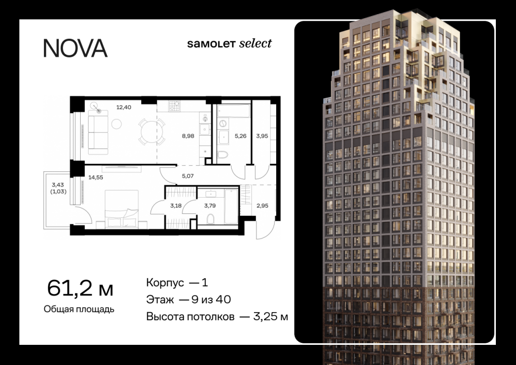 Строим кварталы для жизни с заботой о будущем. Предлагается 1-комнатная квартира премиум-класса 61,16 кв.м в корпусе 1 на 9 этаже, в ЖК «NOVA» Квартира без отделки. Доступность опции «отделка» и возможность комплектации мебелью и декором уточняйте у застройщика. Приобрести квартиру возможно по специальным акциям от застройщика, с текущими условиями акций можно ознакомиться в блоке «Акций». Цена динамическая и может отличаться, уточняйте актуальность у застройщика. «NOVA» — первый проект в премиальной линейке Samolet Select. Возводится в престижных Раменках и вблизи Кутузовского проспекта. Шесть корпусов переменной этажности повторяют очертания горных вершин и воплощают концепцию проекта-скалы: возвышающийся над городом ансамбль дает то же ощущение масштаба и ясности. Утопающая в зелени «Долина реки Сетунь», гастрономические точки, кинотеатр под открытым небом, бизнес-центр и фитнес-клуб — все это делает NOVA самодостаточным, но чувствующим пульс города пространством.