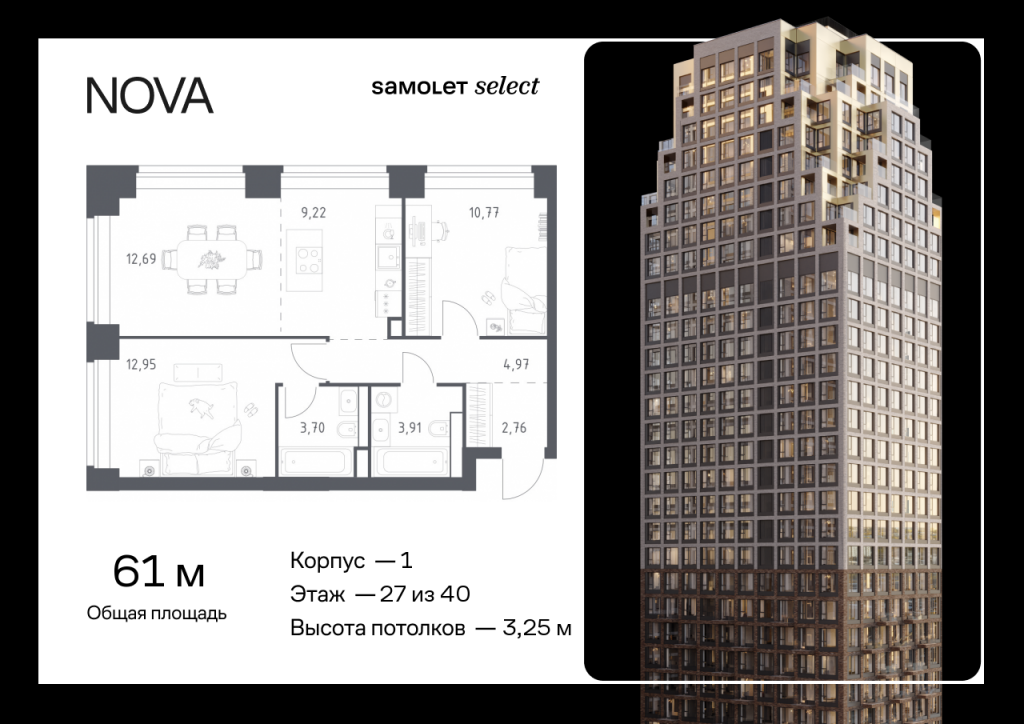 Строим кварталы для жизни с заботой о будущем. Предлагается 2-комнатная квартира премиум-класса 60,97 кв.м в корпусе 1 на 27 этаже, в ЖК «NOVA» Квартира без отделки. Доступность опции «отделка» и возможность комплектации мебелью и декором уточняйте у застройщика. Приобрести квартиру возможно по специальным акциям от застройщика, с текущими условиями акций можно ознакомиться в блоке «Акций». Цена динамическая и может отличаться, уточняйте актуальность у застройщика. «NOVA» — первый проект в премиальной линейке Samolet Select. Возводится в престижных Раменках и вблизи Кутузовского проспекта. Шесть корпусов переменной этажности повторяют очертания горных вершин и воплощают концепцию проекта-скалы: возвышающийся над городом ансамбль дает то же ощущение масштаба и ясности. Утопающая в зелени «Долина реки Сетунь», гастрономические точки, кинотеатр под открытым небом, бизнес-центр и фитнес-клуб — все это делает NOVA самодостаточным, но чувствующим пульс города пространством.