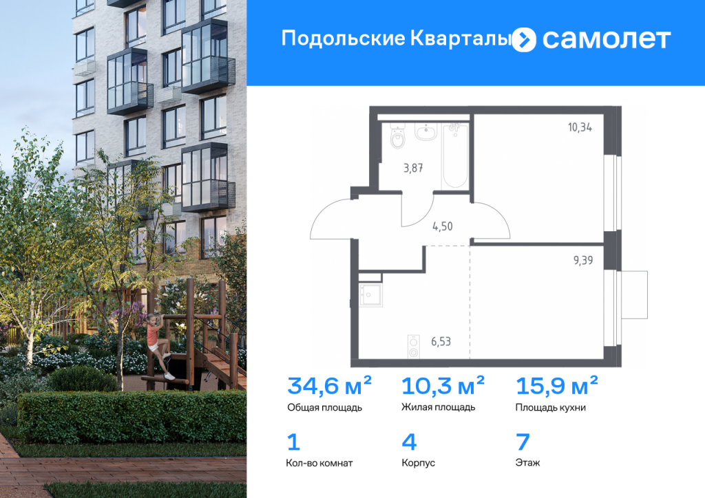 Строим кварталы для жизни с заботой о будущем. Предлагается 1-комнатная квартира комфорт-класса 34,63 кв.м в корпусе 4 на 7 этаже, в ЖК «Подольские Кварталы» Квартира с чистовой отделкой. Доступность дополнительных опций уточняйте у застройщика. Приобрести квартиру возможно по специальным акциям от застройщика, с текущими условиями акций можно ознакомиться в блоке «Акций». Цена динамическая и может отличаться, уточняйте актуальность у застройщика. «Подольские кварталы» — жилой комплекс в Новой Москве, рядом с Дубровицким лесом и рекой Десной. До станции МЦД-2 "Остафьево" - 5 минут на общественном транспорте, до станции МЦД-2 «Силикатная» — 8 минут на машине. Рядом — музей-заповедник «Остафьево», усадьбы Плещеево и Дубровицы. В квартале будут детский сад на 200 мест и учебно-воспитательный комплекс на 1 500 мест, в который войдут школа и детский сад. Первые этажи жилых корпусов займут квартиры, кафе, магазины и салоны красоты. Дворы-парки будут радовать жителей цветением и зеленью: здесь высадят липы, сосны, ели, клены и сирень. Плэйхаб станет местом встреч всех любителей активного отдыха: застройщик оборудует зоны тренажеров и воркаута, площадки для игр в настольный теннис, мяч, шахматы. Также появятся современные игровые площадки для детей. Для автовладельцев предусмотрен многоуровневый паркинг. В проекте — монолитные дома высотой от 9 до 12 этажей. Теплые оттенки фасадов соответствуют дизайн-коду «Янтарный берег». Фасады облицованы ложковой кирпичной кладкой.