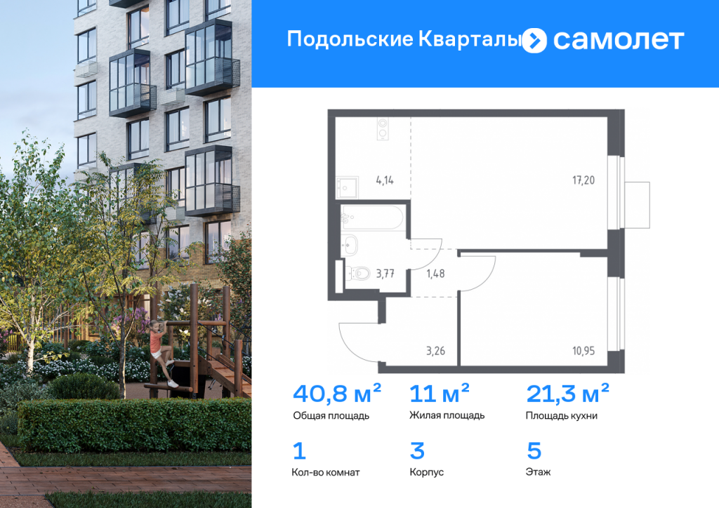 Строим кварталы для жизни с заботой о будущем. Предлагается 1-комнатная квартира комфорт-класса 40,8 кв.м в корпусе 3 на 5 этаже, в ЖК «Подольские Кварталы» Квартира без отделки. Доступность опции «отделка» и возможность комплектации мебелью и декором уточняйте у застройщика. Приобрести квартиру возможно по специальным акциям от застройщика, с текущими условиями акций можно ознакомиться в блоке «Акций». Цена динамическая и может отличаться, уточняйте актуальность у застройщика. «Подольские кварталы» — жилой комплекс в Новой Москве, рядом с Дубровицким лесом и рекой Десной. До станции МЦД-2 "Остафьево" - 5 минут на общественном транспорте, до станции МЦД-2 «Силикатная» — 8 минут на машине. Рядом — музей-заповедник «Остафьево», усадьбы Плещеево и Дубровицы. В квартале будут детский сад на 200 мест и учебно-воспитательный комплекс на 1 500 мест, в который войдут школа и детский сад. Первые этажи жилых корпусов займут квартиры, кафе, магазины и салоны красоты. Дворы-парки будут радовать жителей цветением и зеленью: здесь высадят липы, сосны, ели, клены и сирень. Плэйхаб станет местом встреч всех любителей активного отдыха: застройщик оборудует зоны тренажеров и воркаута, площадки для игр в настольный теннис, мяч, шахматы. Также появятся современные игровые площадки для детей. Для автовладельцев предусмотрен многоуровневый паркинг. В проекте — монолитные дома высотой от 9 до 12 этажей. Теплые оттенки фасадов соответствуют дизайн-коду «Янтарный берег». Фасады облицованы ложковой кирпичной кладкой.