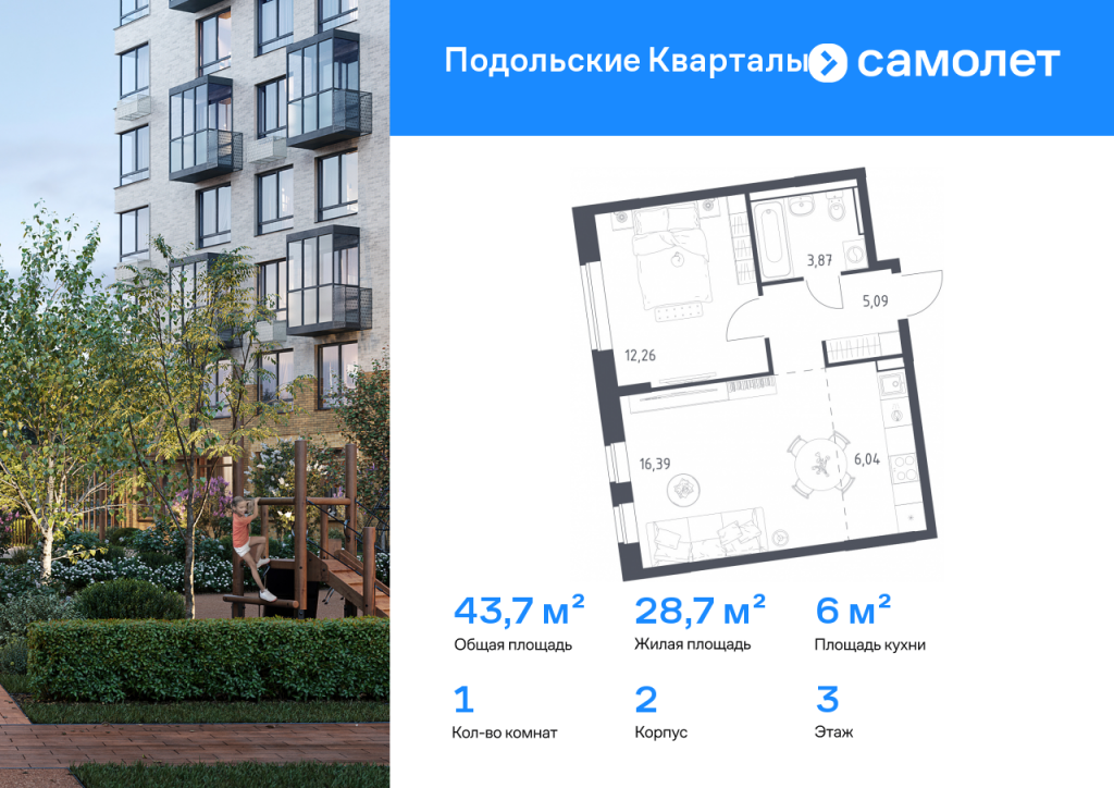 Строим кварталы для жизни с заботой о будущем. Предлагается 1-комнатная квартира комфорт-класса 43,65 кв.м в корпусе 2 на 3 этаже, в ЖК «Подольские Кварталы» Квартира без отделки. Доступность опции «отделка» и возможность комплектации мебелью и декором уточняйте у застройщика. Приобрести квартиру возможно по специальным акциям от застройщика, с текущими условиями акций можно ознакомиться в блоке «Акций». Цена динамическая и может отличаться, уточняйте актуальность у застройщика. «Подольские кварталы» — жилой комплекс в Новой Москве, рядом с Дубровицким лесом и рекой Десной. До станции МЦД-2 "Остафьево" - 5 минут на общественном транспорте, до станции МЦД-2 «Силикатная» — 8 минут на машине. Рядом — музей-заповедник «Остафьево», усадьбы Плещеево и Дубровицы. В квартале будут детский сад на 200 мест и учебно-воспитательный комплекс на 1 500 мест, в который войдут школа и детский сад. Первые этажи жилых корпусов займут квартиры, кафе, магазины и салоны красоты. Дворы-парки будут радовать жителей цветением и зеленью: здесь высадят липы, сосны, ели, клены и сирень. Плэйхаб станет местом встреч всех любителей активного отдыха: застройщик оборудует зоны тренажеров и воркаута, площадки для игр в настольный теннис, мяч, шахматы. Также появятся современные игровые площадки для детей. Для автовладельцев предусмотрен многоуровневый паркинг. В проекте — монолитные дома высотой от 9 до 12 этажей. Теплые оттенки фасадов соответствуют дизайн-коду «Янтарный берег». Фасады облицованы ложковой кирпичной кладкой.