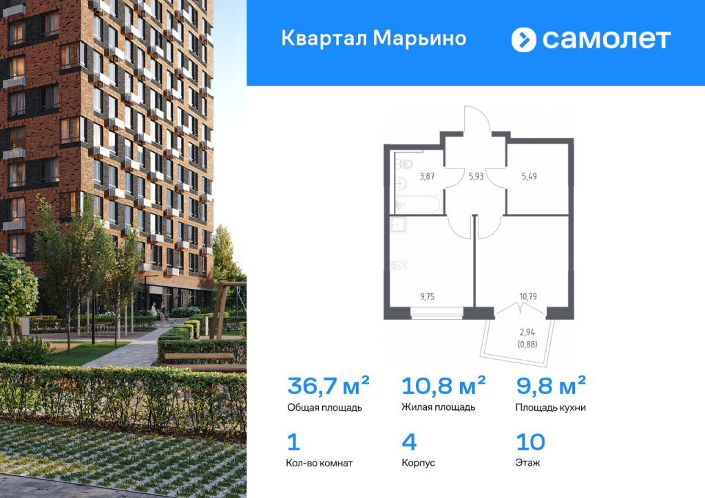 Строим кварталы для жизни с заботой о будущем. Предлагается 1-комнатная квартира комфорт-класса 36,71 кв.м в корпусе 4 на 10 этаже, в ЖК «Квартал Марьино» Квартира с чистовой отделкой. Доступность дополнительных опций уточняйте у застройщика. Приобрести квартиру возможно по специальным акциям от застройщика, с текущими условиями акций можно ознакомиться в блоке «Акций». Цена динамическая и может отличаться, уточняйте актуальность у застройщика. «Квартал Марьино» — проект в Новой Москве, в 18 км от МКАД, вблизи Валуевского лесопарка. Здесь будет все, чтобы получать удовольствие от жизни: приватные дворы-парки без машин, инфраструктура в шаговой доступности и общественные пространства для разнообразных занятий на свежем воздухе. До станции метро «Филатов луг» — 15 минут на машине по Филимонковскому шоссе. Живописные места для отдыха на природе — на расстоянии 2-5 км от дома. На территории будут построены 6 детских садов, 4 школы, поликлиника и спортивный комплекс, а также кафе, магазины и салоны красоты на первых этажах жилых домов. В закрытых дворах-парках предусмотрены игровые площадки, лужайки для пикников и йоги. Пространства для спокойного отдыха будут огорожены живыми изгородями. Дизайн-код проекта — «Полевые цветы». Он прослеживается в каждой детали — от натуральных оттенков фасадов до элементов благоустройства в эко-стиле.