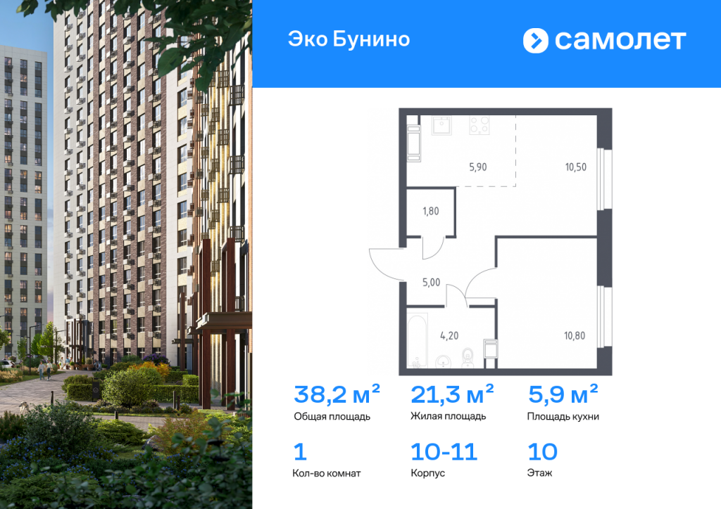 Строим кварталы для жизни с заботой о будущем. Предлагается 1-комнатная квартира комфорт-класса 38,2 кв.м в корпусе 10-11 на 10 этаже, в ЖК «Эко Бунино» Квартира с чистовой отделкой. Доступность дополнительных опций уточняйте у застройщика. Приобрести квартиру возможно по специальным акциям от застройщика, с текущими условиями акций можно ознакомиться в блоке «Акций». Цена динамическая и может отличаться, уточняйте актуальность у застройщика. «Эко Бунино» — жилой комплекс в Новой Москве, полностью готовый для жизни. Уже построены школа и детские сады, открыты ледовая арена и магазины. Рядом — 2 станции метро и 3 лесопарка для прогулок. До станции метро «Новомосковская» — 20 минут пешком по экотропе. Во дворах-парках, закрытых от машин, комфортно и безопасно гулять. Здесь высажены уже взрослые деревья, которые создают прохладную тень в жаркий день. Ребенок любого возраста найдет увлекательное занятие в уже готовом плейхабе с большой горкой в виде слона и уникальным игровым оборудованием. Пока дети играют, родители могут прогуляться по бульвару или отдохнуть под навесом из растений. «Эко Бунино» — это 19 монолитных домов переменной этажности. Для облицовки используется навесной вентилируемый фасад и клинкерная плитка, которая имитирует кирпич. Переменная этажность обеспечивает хорошую инсоляцию дворов: в солнечные дни на территории особенно приятно гулять.