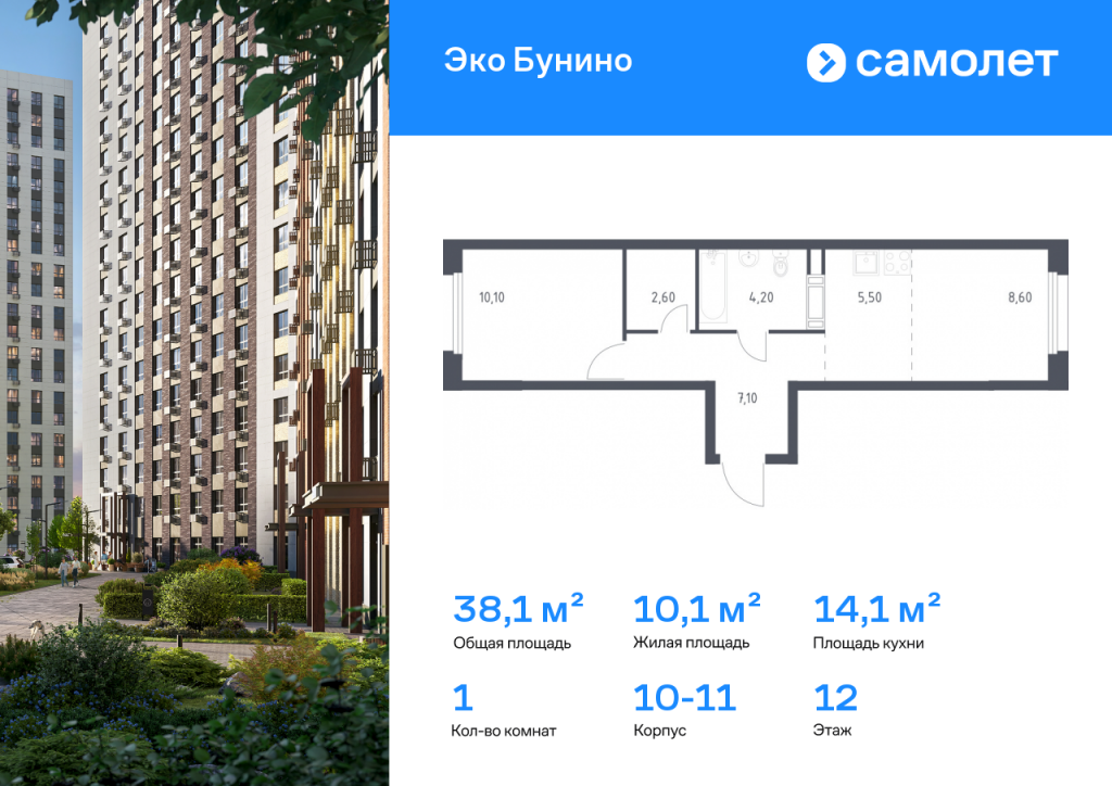 Строим кварталы для жизни с заботой о будущем. Предлагается 1-комнатная квартира комфорт-класса 38,1 кв.м в корпусе 10-11 на 12 этаже, в ЖК «Эко Бунино» Квартира с чистовой отделкой. Доступность дополнительных опций уточняйте у застройщика. Приобрести квартиру возможно по специальным акциям от застройщика, с текущими условиями акций можно ознакомиться в блоке «Акций». Цена динамическая и может отличаться, уточняйте актуальность у застройщика. «Эко Бунино» — жилой комплекс в Новой Москве, полностью готовый для жизни. Уже построены школа и детские сады, открыты ледовая арена и магазины. Рядом — 2 станции метро и 3 лесопарка для прогулок. До станции метро «Новомосковская» — 20 минут пешком по экотропе. Во дворах-парках, закрытых от машин, комфортно и безопасно гулять. Здесь высажены уже взрослые деревья, которые создают прохладную тень в жаркий день. Ребенок любого возраста найдет увлекательное занятие в уже готовом плейхабе с большой горкой в виде слона и уникальным игровым оборудованием. Пока дети играют, родители могут прогуляться по бульвару или отдохнуть под навесом из растений. «Эко Бунино» — это 19 монолитных домов переменной этажности. Для облицовки используется навесной вентилируемый фасад и клинкерная плитка, которая имитирует кирпич. Переменная этажность обеспечивает хорошую инсоляцию дворов: в солнечные дни на территории особенно приятно гулять.
