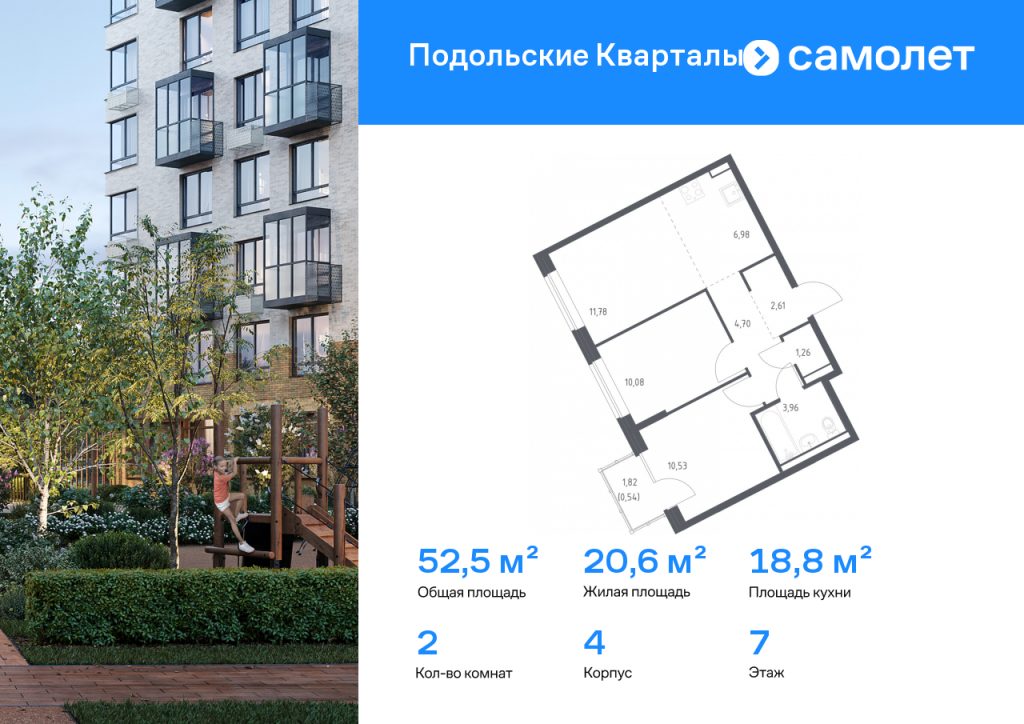 Строим кварталы для жизни с заботой о будущем. Предлагается 2-комнатная квартира комфорт-класса 52,45 кв.м в корпусе 4 на 7 этаже, в ЖК «Подольские Кварталы» Квартира с чистовой отделкой. Доступность дополнительных опций уточняйте у застройщика. Приобрести квартиру возможно по специальным акциям от застройщика, с текущими условиями акций можно ознакомиться в блоке «Акций». Цена динамическая и может отличаться, уточняйте актуальность у застройщика. «Подольские кварталы» — жилой комплекс в Новой Москве, рядом с Дубровицким лесом и рекой Десной. До станции МЦД-2 "Остафьево" - 5 минут на общественном транспорте, до станции МЦД-2 «Силикатная» — 8 минут на машине. Рядом — музей-заповедник «Остафьево», усадьбы Плещеево и Дубровицы. В квартале будут детский сад на 200 мест и учебно-воспитательный комплекс на 1 500 мест, в который войдут школа и детский сад. Первые этажи жилых корпусов займут квартиры, кафе, магазины и салоны красоты. Дворы-парки будут радовать жителей цветением и зеленью: здесь высадят липы, сосны, ели, клены и сирень. Плэйхаб станет местом встреч всех любителей активного отдыха: застройщик оборудует зоны тренажеров и воркаута, площадки для игр в настольный теннис, мяч, шахматы. Также появятся современные игровые площадки для детей. Для автовладельцев предусмотрен многоуровневый паркинг. В проекте — монолитные дома высотой от 9 до 12 этажей. Теплые оттенки фасадов соответствуют дизайн-коду «Янтарный берег». Фасады облицованы ложковой кирпичной кладкой.