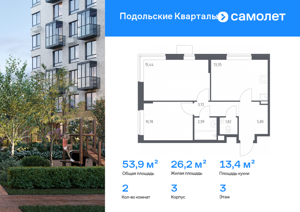 Строим кварталы для жизни с заботой о будущем. Предлагается 2-комнатная квартира комфорт-класса 53,9 кв.м в корпусе 3 на 3 этаже, в ЖК «Подольские Кварталы» Квартира с чистовой отделкой. Доступность дополнительных опций уточняйте у застройщика. Приобрести квартиру возможно по специальным акциям от застройщика, с текущими условиями акций можно ознакомиться в блоке «Акций». Цена динамическая и может отличаться, уточняйте актуальность у застройщика. «Подольские кварталы» — жилой комплекс в Новой Москве, рядом с Дубровицким лесом и рекой Десной. До станции МЦД-2 "Остафьево" - 5 минут на общественном транспорте, до станции МЦД-2 «Силикатная» — 8 минут на машине. Рядом — музей-заповедник «Остафьево», усадьбы Плещеево и Дубровицы. В квартале будут детский сад на 200 мест и учебно-воспитательный комплекс на 1 500 мест, в который войдут школа и детский сад. Первые этажи жилых корпусов займут квартиры, кафе, магазины и салоны красоты. Дворы-парки будут радовать жителей цветением и зеленью: здесь высадят липы, сосны, ели, клены и сирень. Плэйхаб станет местом встреч всех любителей активного отдыха: застройщик оборудует зоны тренажеров и воркаута, площадки для игр в настольный теннис, мяч, шахматы. Также появятся современные игровые площадки для детей. Для автовладельцев предусмотрен многоуровневый паркинг. В проекте — монолитные дома высотой от 9 до 12 этажей. Теплые оттенки фасадов соответствуют дизайн-коду «Янтарный берег». Фасады облицованы ложковой кирпичной кладкой.