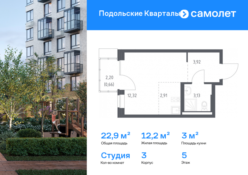Строим кварталы для жизни с заботой о будущем. Предлагается квартира студия комфорт-класса 22,94 кв.м в корпусе 3 на 5 этаже, в ЖК «Подольские Кварталы» Квартира без отделки. Доступность опции «отделка» и возможность комплектации мебелью и декором уточняйте у застройщика. Приобрести квартиру возможно по специальным акциям от застройщика, с текущими условиями акций можно ознакомиться в блоке «Акций». Цена динамическая и может отличаться, уточняйте актуальность у застройщика. «Подольские кварталы» — жилой комплекс в Новой Москве, рядом с Дубровицким лесом и рекой Десной. До станции МЦД-2 "Остафьево" - 5 минут на общественном транспорте, до станции МЦД-2 «Силикатная» — 8 минут на машине. Рядом — музей-заповедник «Остафьево», усадьбы Плещеево и Дубровицы. В квартале будут детский сад на 200 мест и учебно-воспитательный комплекс на 1 500 мест, в который войдут школа и детский сад. Первые этажи жилых корпусов займут квартиры, кафе, магазины и салоны красоты. Дворы-парки будут радовать жителей цветением и зеленью: здесь высадят липы, сосны, ели, клены и сирень. Плэйхаб станет местом встреч всех любителей активного отдыха: застройщик оборудует зоны тренажеров и воркаута, площадки для игр в настольный теннис, мяч, шахматы. Также появятся современные игровые площадки для детей. Для автовладельцев предусмотрен многоуровневый паркинг. В проекте — монолитные дома высотой от 9 до 12 этажей. Теплые оттенки фасадов соответствуют дизайн-коду «Янтарный берег». Фасады облицованы ложковой кирпичной кладкой.